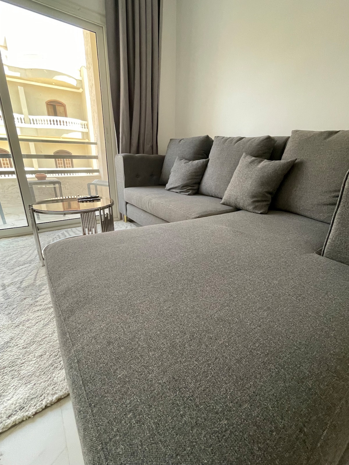 Enjoy luxury poolside living in Soma Bay! Modern 1-bedroom apartment (71 m²) on the ground floor with a private outdoor area facing the pool and garden. Bright, sunny interiors, fully equipped kitchen, elegant bathroom, & smart TV. Perfect for couples seeking relaxation near the beach in a quiet, resort-style community.