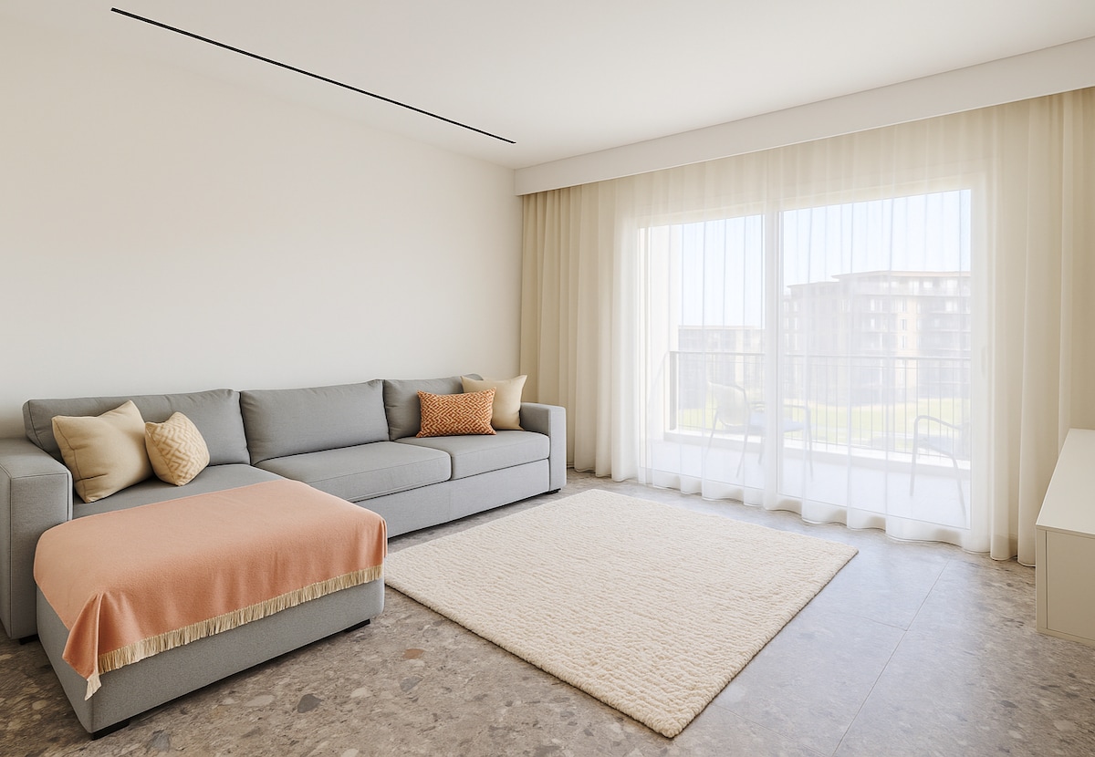 Enjoy luxury poolside living in Soma Bay! Modern 1-bedroom apartment (71 m²) on the ground floor with a private outdoor area facing the pool and garden. Bright, sunny interiors, fully equipped kitchen, elegant bathroom, & smart TV. Perfect for couples seeking relaxation near the beach in a quiet, resort-style community.