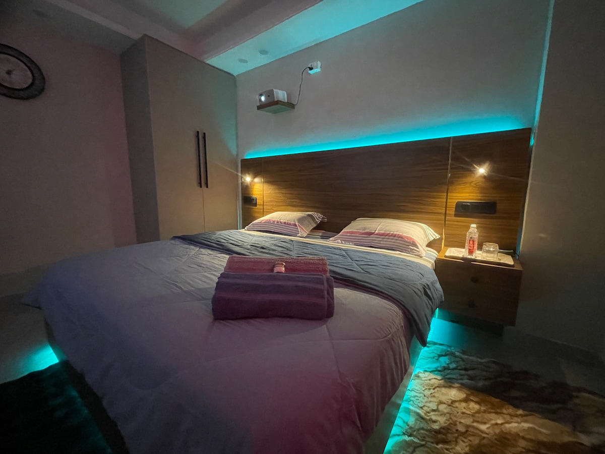 Private 1BHK, Self Check-in Ig : wularhomes Welcome to Our Bright & Cozy 1BHK in Delhi! This modern apartment features a cozy sofa, two ACs, a fully equipped kitchen with an induction cooktop, kettle, and all essentials. The stylish washroom has a geyser, and the giant balcony is perfect for relaxation. Enjoy bright, natural light,and all modern amenities. Located in a convenient area near Delhi metro with easy access to markets and transport, it's perfect for comfortable stay in the city!