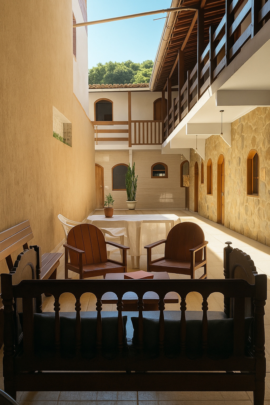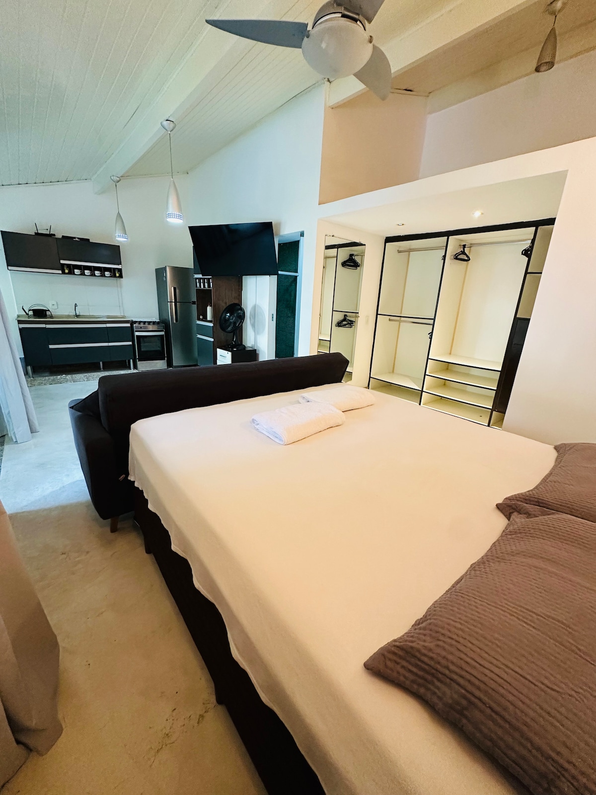 CASA SABIA: Charmoso studio de 2 andares (cozinha e banheiro no térreo, quarto no andar superior) com jardim privativo, em mini condomínio com piscina (compartilhada) em Arraial d'Ajuda e todas as comodidades. Com uma arquitetura moderna, oferece uma atmosfera intimista e cativante, perfeita para uma escapada a dois.