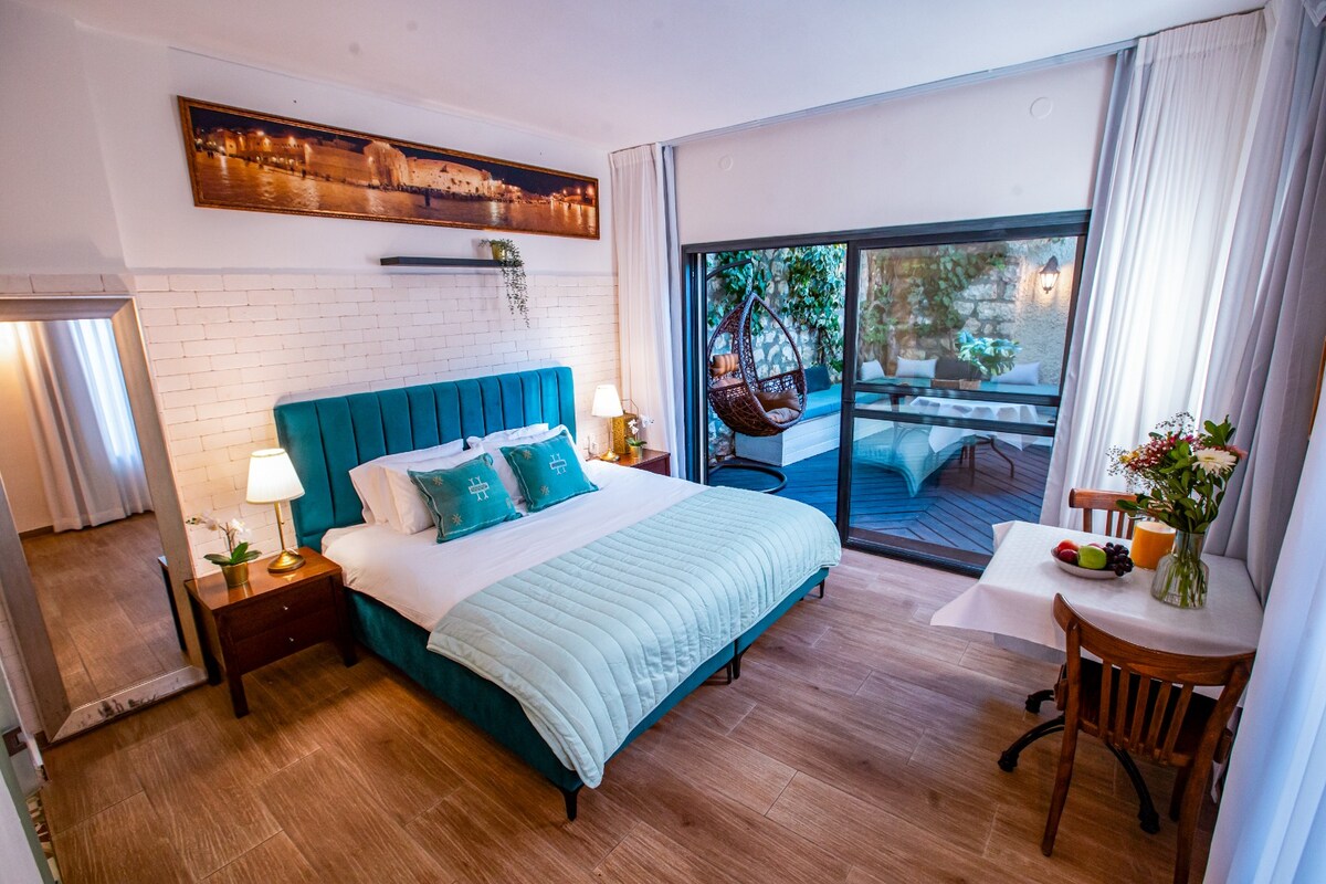 Boutique Suites that includes four private suites, outdoor lounge and a kosher living room / kitchenette. Located in Tzfat's Old city's Artist Quarter, right next to Ruth Safed Hotel (Rimonim),walking distance from galleries, synagogues, restaurants and all Tzfat's best attraits. Ground floor, no stairs, easy access to people of all age. Free parking The suites contains quality kosher bed, Shabbat lamps, minibar, bathroom, AC/ heater system, High Speed Wifi, Table and chairs. (Extra cod beds)