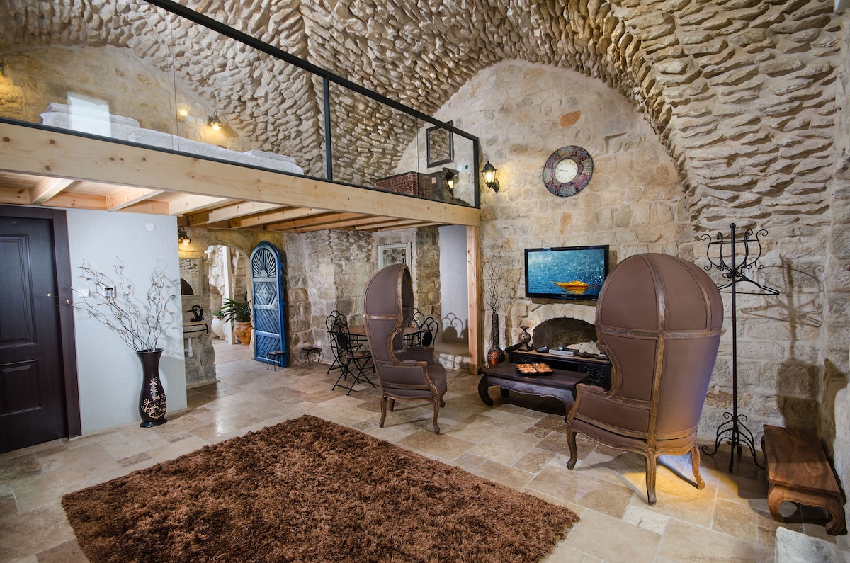 בסמטאות העיר העתיקה במרחק הליכה קצר ממסעדות, חנויות ובתי כנסת שוכנת סוויטת בוטיק זוגית עם ג'קוזי מפנק, מיטה זוגית יהודית, מטבח, פינת אוכל ופינות ישיבה מרווחות. חלל השינה בנוי מאבן צפתית אותנטית עתיקה, שילוב מדויק של מודרני ועתיק. חוויה מיוחדת במינה