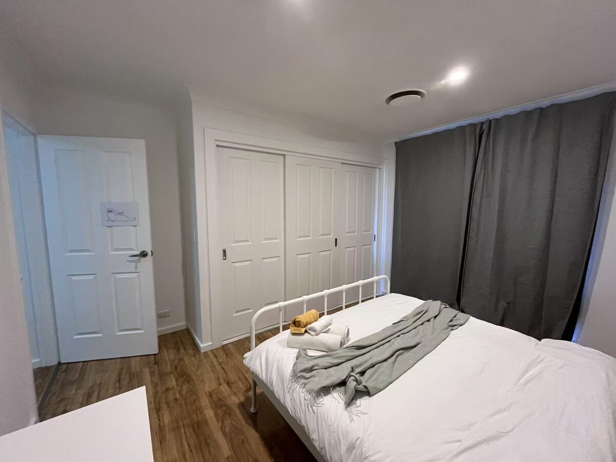 Exclusive 1 bedroom 1 bathroom that is attached to main house made into self-contained private accommodation. NOTE: Entrance - Door to Airbnb unit is the first door on the RHS of porch. Access is not the side gate near lockbox. Parking on fake turf at front location shown in images. Fully functional kitchen BAR Fridge KING bed 55 inch plasma tv with google chromecast WIFI A/C Ensuite with shower & toilet Washing machine Clothes racks Ironing essentials Hair dryer