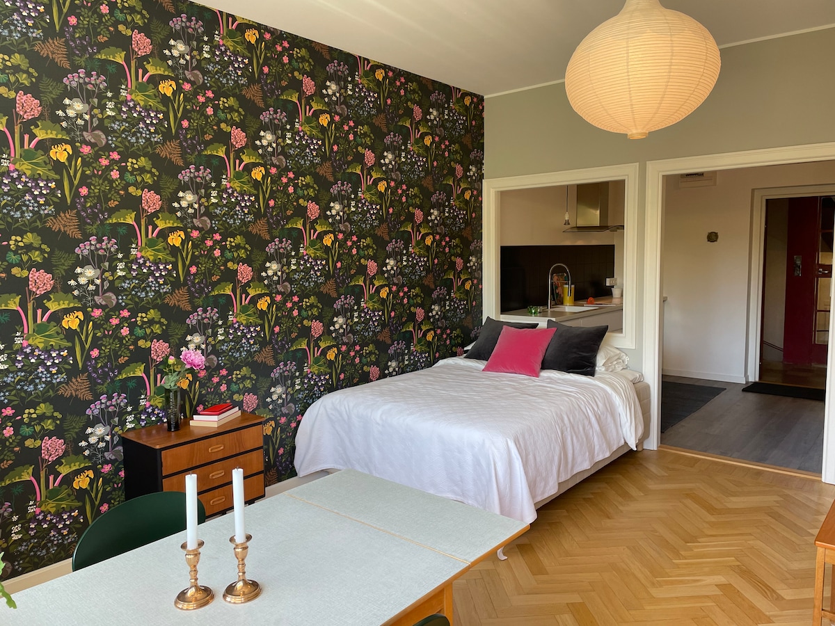 Liten lägenhet, lugnt läge m närhet till naturen. Nära till sjö, badplats och friluftsområde med grillstugor o löparspår. 140 säng plus en bäddsoffa Kök, toalett & dusch Sängkläder + handduk finns till extra kostnad på 80:- /pers Bastu: 80:- per tillfälle För info: två små honkatter finns på tomten Small apartment close to nature and a lake Very nice running tracks close by in the forest 140 cm bed plus a sofa bed Kitchen, toilet & shower Bedlinnen +80 SEK/pers Sauna: +80:-