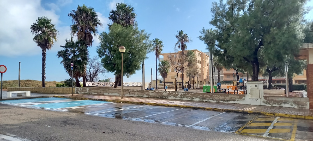 Este magnifico apartamento dispone de una amplia terraza soleada para que disfrutes mirando el mar y las huertas valencianas. Totalmente adaptado para personas con movilidad reducida. Esta situado en primera linea de playa y a cinco minutos andando del pueblo con todos los servicios (horno, farmacia, tiendas, etc.) Tendrás 11 kilómetros de playa de fina arena para largos paseos. Internet por fibra que le permitirá teletrabajar cómodamente.