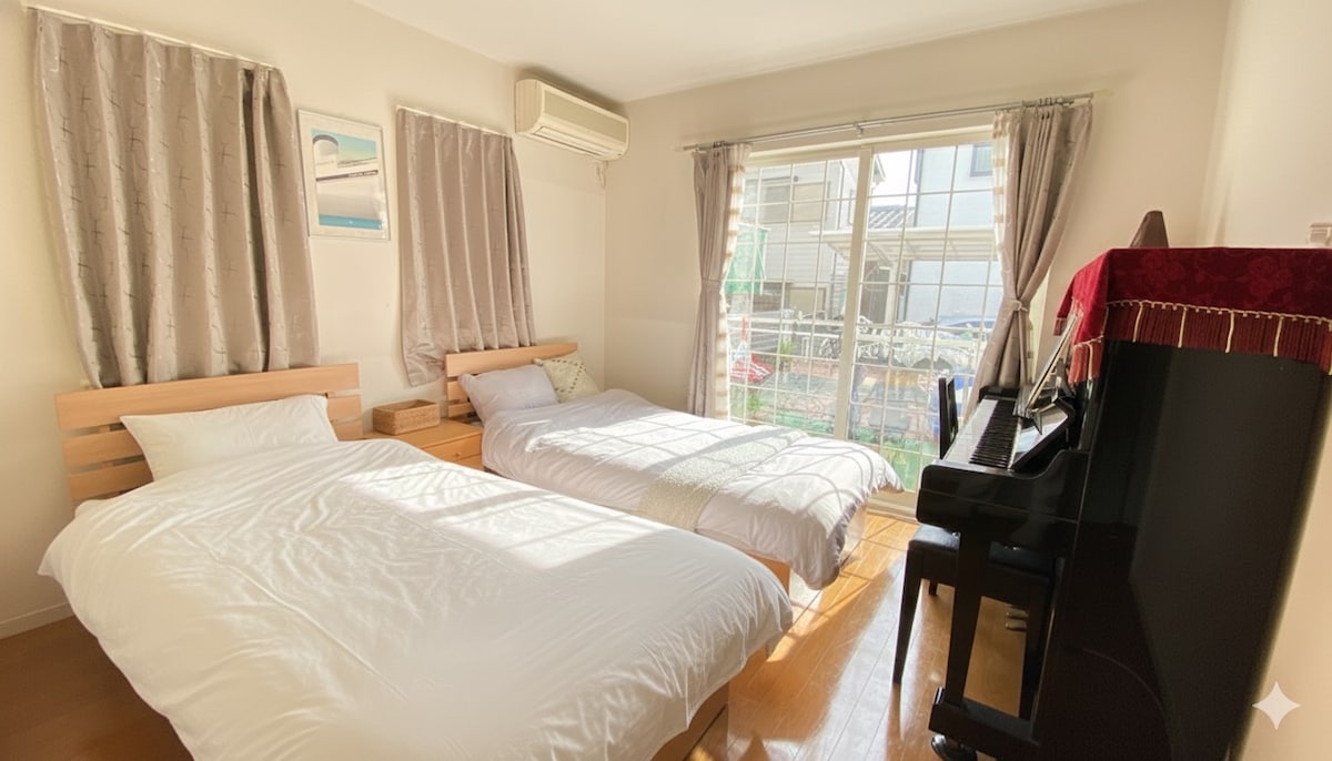从佐贺站步行15分钟。乘出租车5分钟。 从佐贺机场轻松访问。 这是一间完全私密的私人洁净室。 还提供免费无线网络连接。 在佐贺市住宿的许可是安全的住宿。 非常适合情侣和小团体(3人)。还有一个厨房,你可以待很长一段时间。 这是一个房间,但它是一个时尚的印象的房间。 毛巾等必需品已经准备就绪。配有2张单人床。还欢迎幼儿。 由于佐贺站周围有许多餐馆和商店,外出就餐也很方便。这是一个安全的地方,所以晚上外出是安全的。还提供设施。 日式招待服务提供咖啡棒。 ☆舒适性☆ 洗发水 身体肥皂 冲洗 剃刀 牙刷 浴巾 面巾 ☆设备☆ 洗衣机(带洗涤剂) 冰箱 空调 淋浴(浴缸) 微波炉 电热水壶 电饭煲 煎锅,锅 盘子和杯子