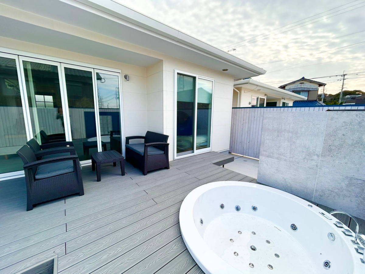 【在天台上眺望美景,度过愉快的时光】 被大自然环绕的长崎大崎半岛,欢迎来到位于海边宁静区域的新建别墅——Seaside Villa N+。 距离豪斯登堡仅18分钟车程,从JR小串乡站驾车仅需6分钟,周边还有温泉,交通非常便利。 在海边或自然公园尽情玩耍后,不妨在天空露台放松身心,伴着夕阳和美酒,与心爱的人共度美好的时光。 晚餐后,可以躺在宽敞的浴缸中放松身心。沐浴过后站在天空露台看风景更是别有一番风味。 当您仰望着笼罩整栋建筑的满天繁星,一定会为之倾倒。 别墅内配备了厨房用品、餐具、洗衣机等生活必需品,甚至还提供了popIn Aladdin投影设备。 最多可容纳6位客人入住,适合您与家人或朋友以度假别墅的方式体验悠闲的时光。 别墅还提供2台车的停车位,停车场就在房源附近,即使携带大件行李也非常方便。 在Seaside Villa N+,让您忍不住脱口而出“好想一直住在这里啊……” 如此美妙的夜晚快快来体验吧!
