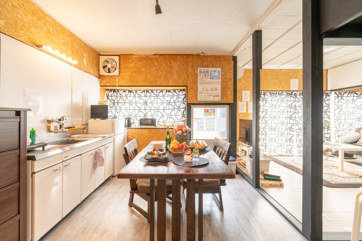 最多9人入住的安靜私密住宿。海邊1分鐘、溫泉與車站15分鐘。免費停車,多日可住。