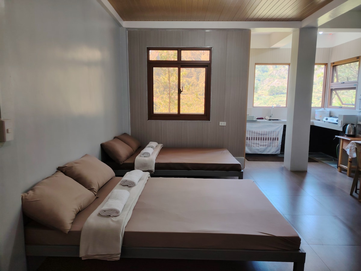 Welcome to our studio type unit, where every window frames the mountains. Inclusions: onsite parking own toilet & bath with hot shower own kitchen complete beddings bath towels bonfire area WiFi View: mountain, rice terraces & sea of clouds Beside drop-off point to Tatayaen Cave 2 mins. drive to Sumaguing Cave 4 mins. drive to Gaia Café, Rust n’ Wood Cafe, Lumiang Burial cave 7 mins. drive to Blue Soil Exit point 9 mins. drive to Town