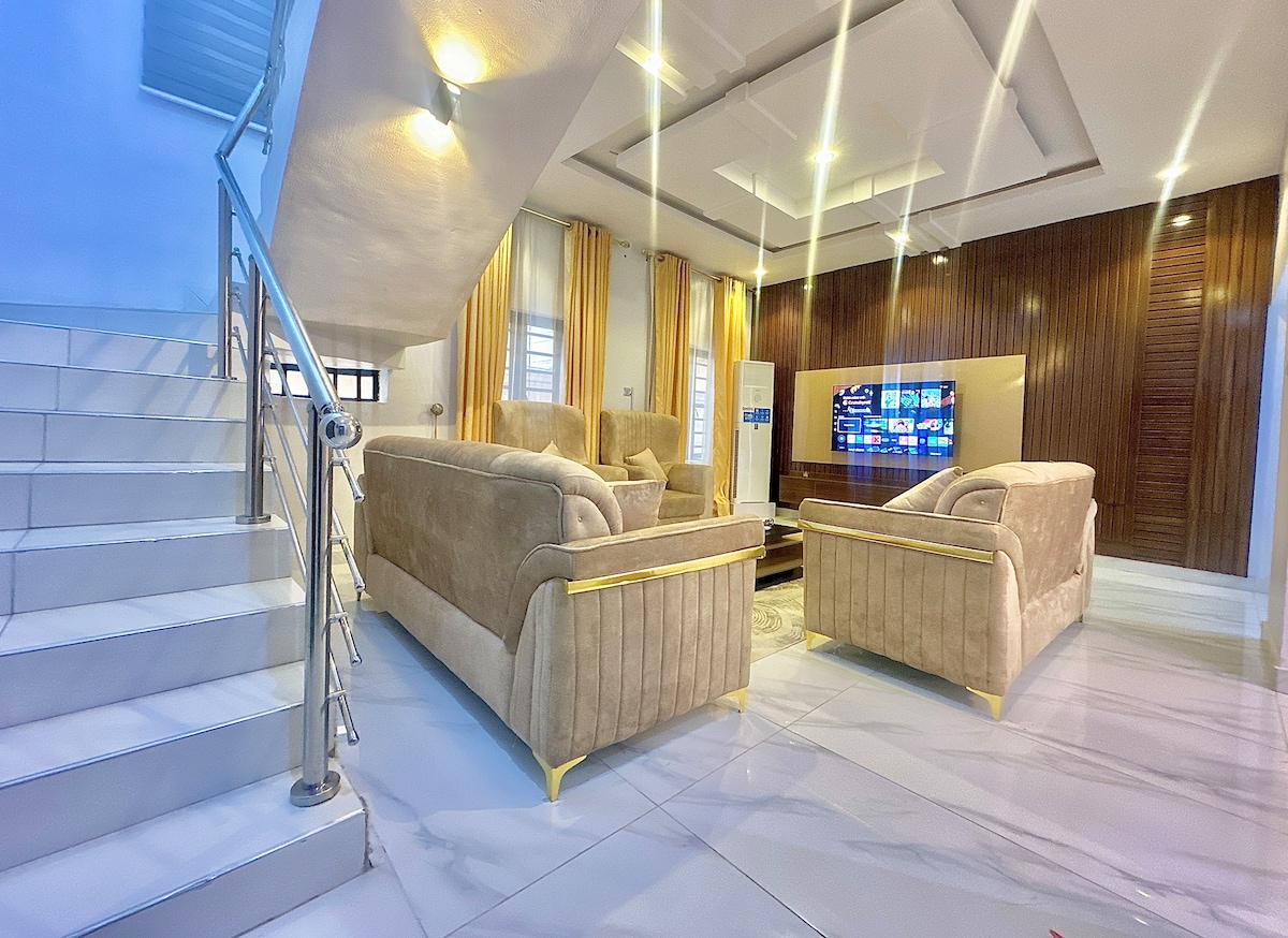 Forget your worries in this spacious and serene space with private compound no sharing… Feature: -Inverter -Band A region -Back up generator -5G Internet 24/7 -Air conditioning -All rooms en-suite -Balcony -Self compound -Ample car park space -Well lit -Spacious and quiet -Large fully fitted kitchen -Dining that seats 6 -Clean water with pressure pump -Blender, Microwave, Electric Kettle -Cleaning Materials -Cleaning available during stay -Convenience Stores within walking distance