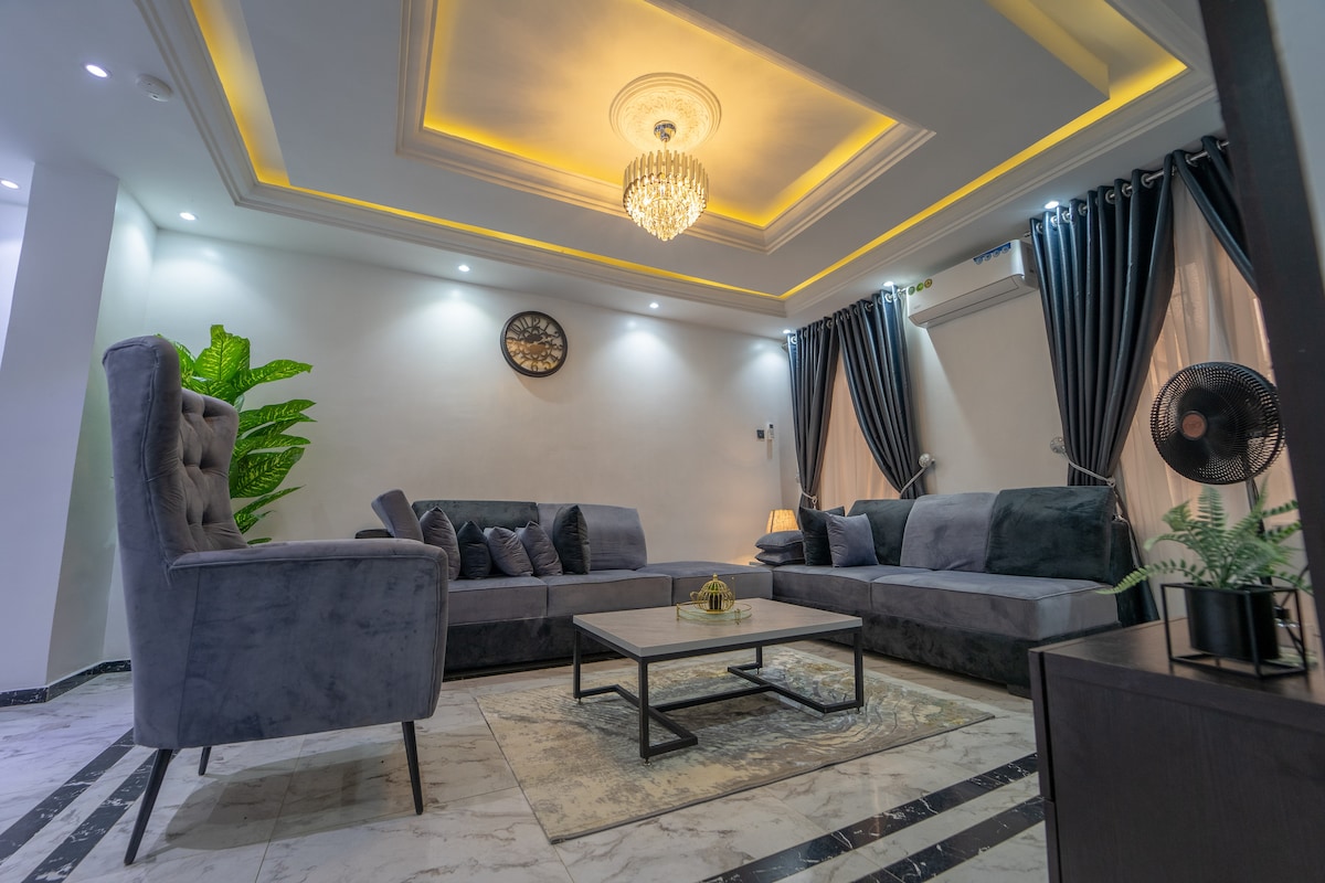 You'll love this stunning 2 bedroom apartment located in a beautiful, well secured and serene estate voted the best estate in Lagos by the state government. This tastefully finished apartment was designed for work and relaxation. A perfect space for anyone who is security conscious. It comes with unlimited WiFi, uninterrupted electricity, 65 inches smart TV with popular streaming services. It is 20 mins drive from the airport, 5 mins to Govt.office, Ikeja City Mall, many bars and night clubs