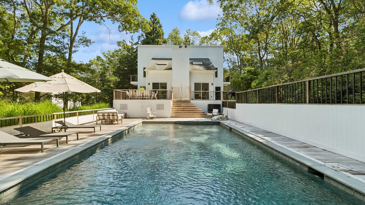 Chic, 5-bedroom, 3.5 half-bath home is close to the water and the village of Southampton. The sparkling pool has a beautiful backdrop of a lushly landscaped garden. Southern exposure in the backyard brings an abundance of sunshine inside and out. The home includes an outdoor sauna, fire pit and rock garden perched above the pool for your very own spa retreat. The inside of the home is thoughtfully designed with a relaxed, chic & luxury feel making it the perfect Hamptons getaway.