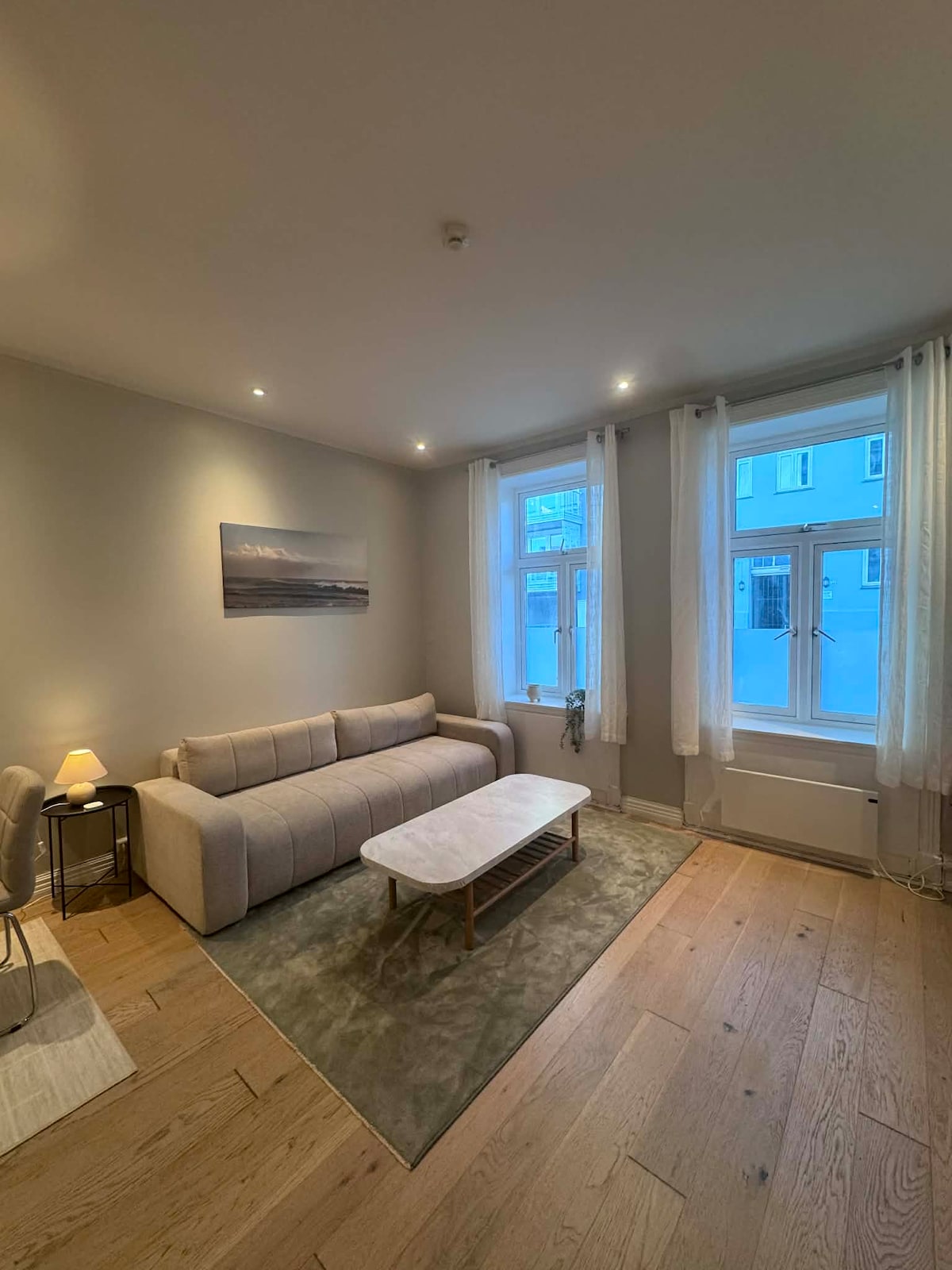Welcome to a bright, modern, and stylish 2-bedroom apartment overlooking the beautiful Akerselven river, located in Grünerløkka—right in the heart of Oslo. Situated on the 4th floor with elevator access, the apartment enjoys an elevated position with large, floor-to-ceiling windows that flood the space with natural light. Step out onto the west-facing private balcony and enjoy afternoon sun and river views—perfect for unwinding after a day in the city.