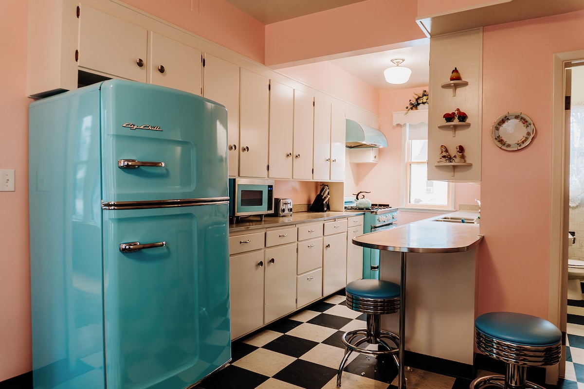 Location, location, location. Restaurants & Attractions walkable. Enjoy renting this 1950’s themed historic homestead with all the modern bells and whistles. During your stay at the Rupprecht Haus you are able to book Full Day passes at a 15% Discount or Half Day Passes at a 10% Discount for the Bavarian Blast Waterpark. There are 4 bedrooms that sleep 11 people comfortably and 2 beautiful, spacious full bathrooms (one with a Jacuzzi tub) with a total of 5 TVs.
