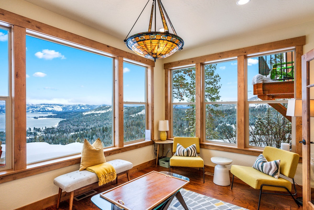 An artist studio conversion replete with stained-glass windows from a local church, Chapel by the Pier, as its name suggests, is down the street from Third Street Pier, a South Sandpoint swimming hole and kayak launch. It's also within walking distance to downtown Sandpoint, making it ideal for strolling (or riding one of the two provided bicycles) to restaurants, bars and boutiques. You won't find another spot as central or with as much character. Plus, furnishings and appliances are new!