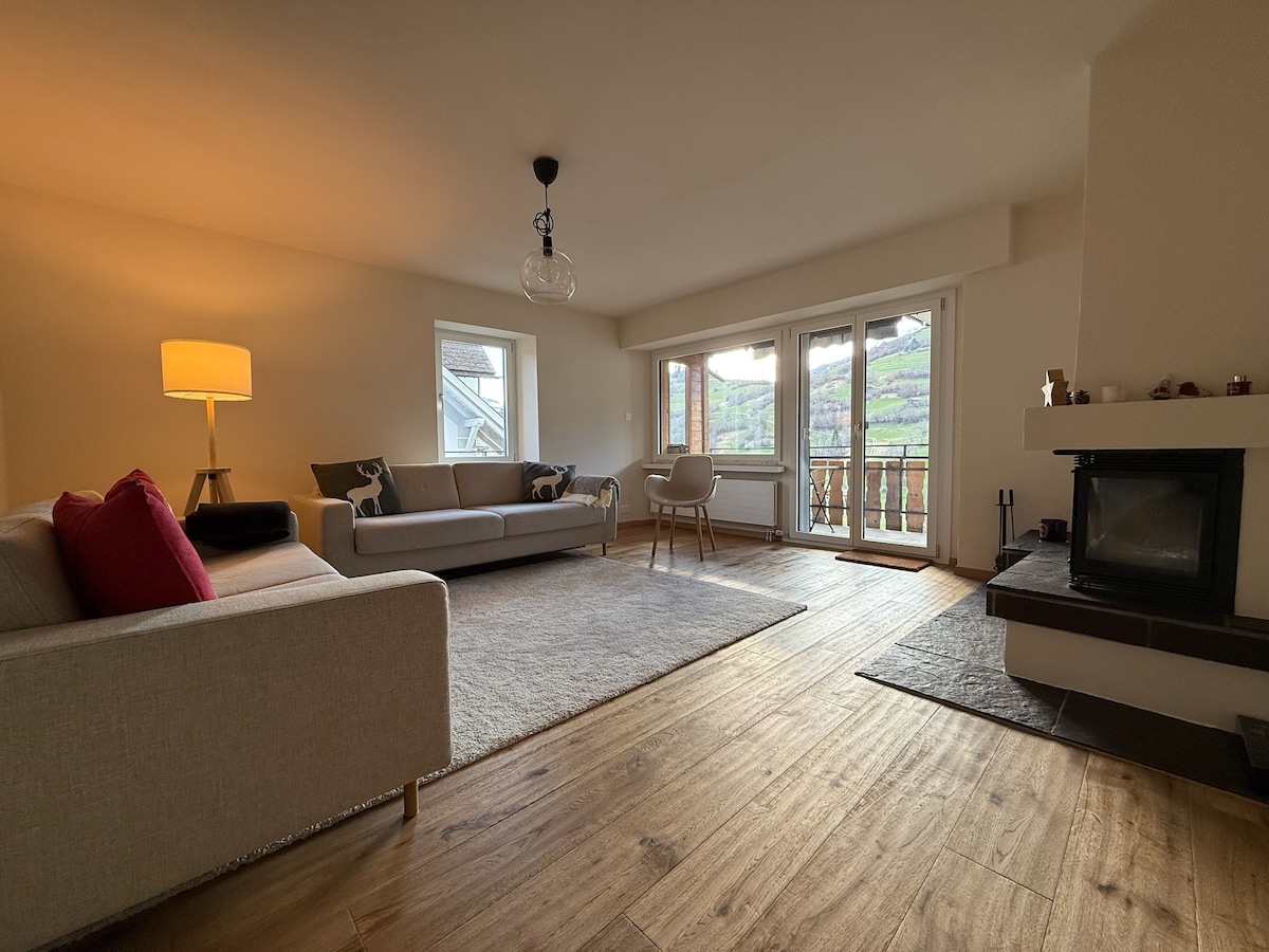 Entspanne dich in diesem einmaligen Rifugio. Im Jahre 2020 total sanierte 2 1/2- Zimmerwohnung, deren Interior Design komplett neu gestaltet wurde. Als Loft mit edelsten Materialien (Valser Granit, Schlossparkett, viel Altholz, freistehende Wanne, Eisenkamin auf zwei Seiten geöffnet, Designarmaturen) ausgebaut. Mit geschütztem Gartensitzplatz und Garten. Sonnige, ruhige Lage. Eigener Hauseingang, Sauna im Nebengebäude. Ski in, ski out oder Skibus in drei Minuten erreichbar.