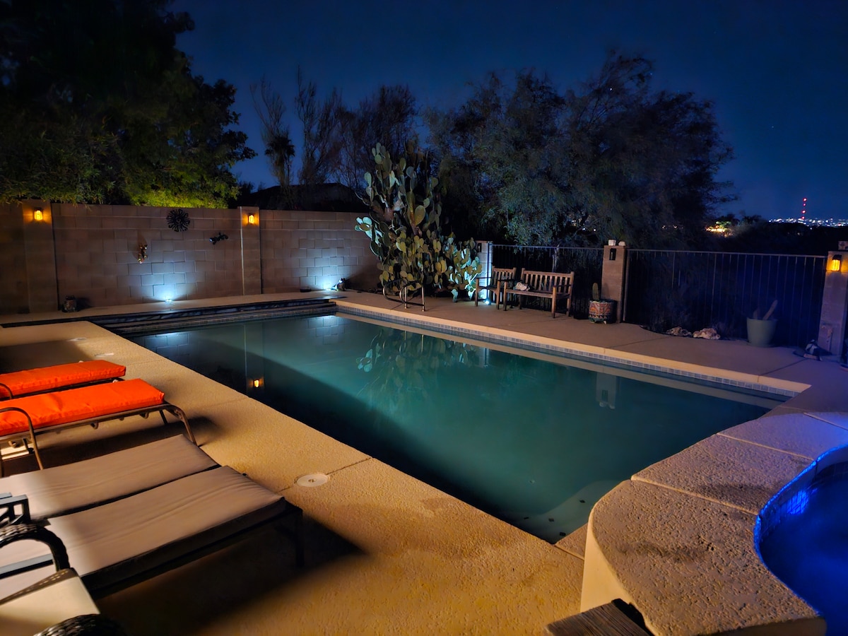 Discover the Zendo Oasis, your private resort in midtown Tucson. Don't settle for a sterile hotel room that can cost hundreds more. The Zendo offers a retreat atmosphere that will impress. Exercise in our full gym and luxuriate in an infrared or hot stone sauna! After, jump in the pool! Sip wine while enjoying evenings around a chiminea under starlit skies—lounge in the sun or shade on the deck or under louvered patios. The Zendo is close to the UA and downtown. Book now and escape the ordinary!