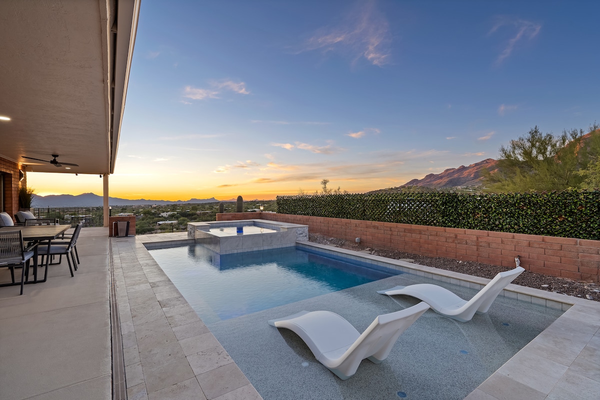 Amazing Home in an Amazing Location with incredible views and an INDOOR POOL! Nestled in the Catalina Foothills is this spacious home with over 4200 sq ft and an indoor pool with a 2nd story walking track that adds another 3000 sq ft. This house also includes a home gym, complete with treadmill, spin bike, and workout bench, and a game room with a huge TV, Cruis'n USA Arcade, and multi-game slot machine. Close to some of the best hiking trails, shopping, restaurants, and golf in all of Tucson