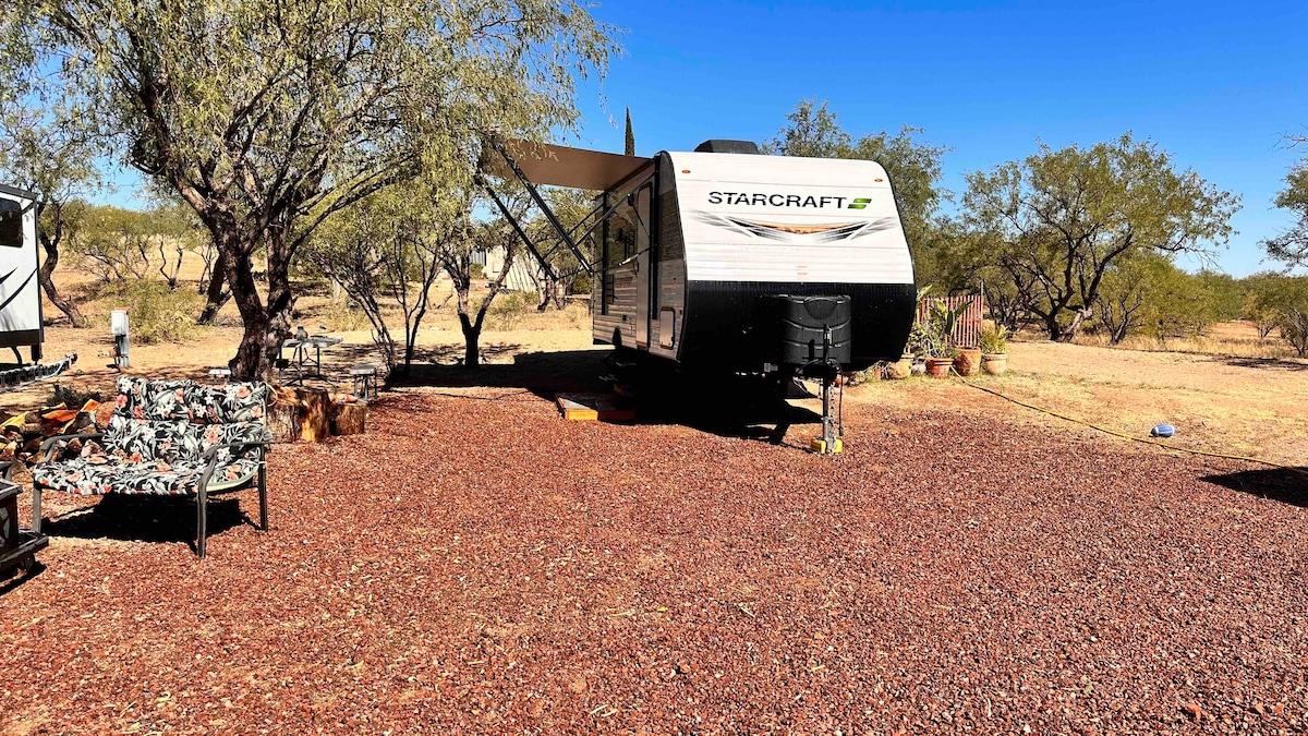 Come enjoy our 28ft 2020 Jayco camper. Were located on a hilltop on the far east side of Tucson, overlooking the beautiful Rincon Valley with mountain views and amazing sunsets. Just 3 minutes to Saguaro National Park East, close to several hiking and biking trails, horseback riding, Colossal Cave Park, Mt Lemon, Saguaro Buttes and a farmers market that is open Saturday. About 7-10 minutes to I-10, grocery stores, restaurants. Legendary old west town Tombstone is a little over an hour away.