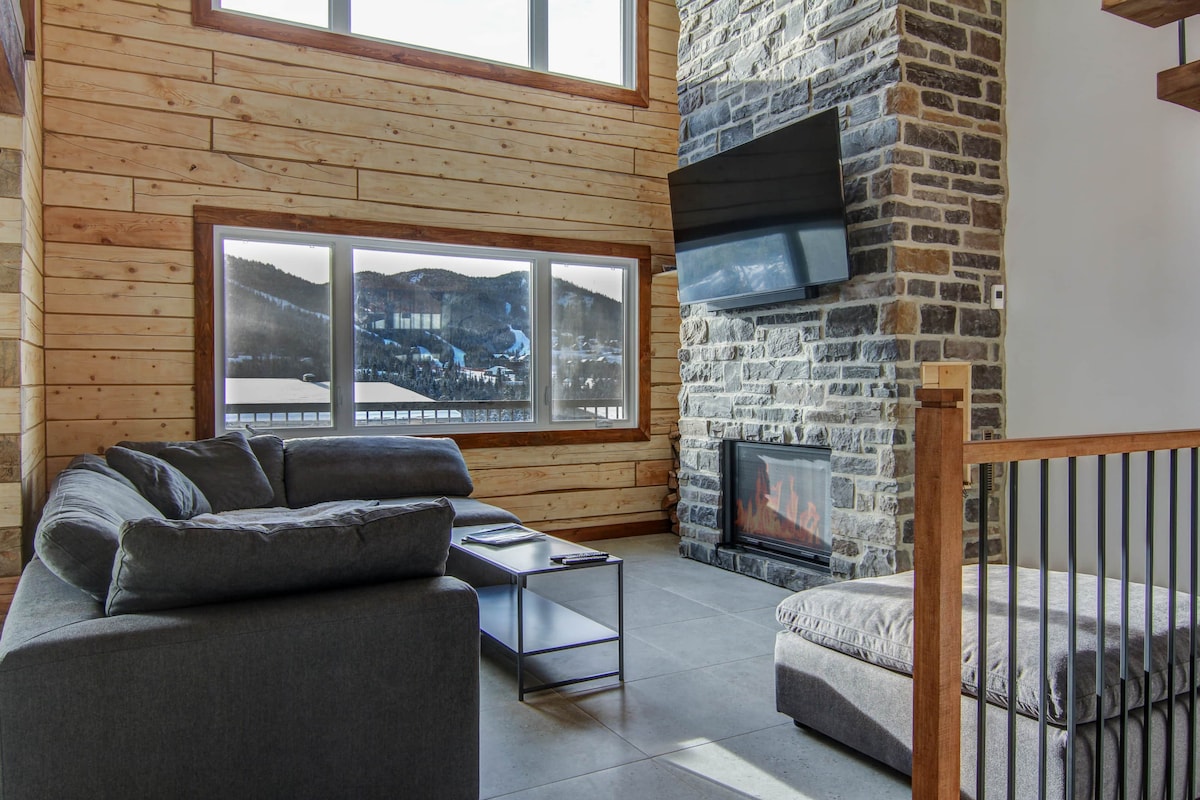 Pour un moment de détente ou de plein air, ce chalet vous comblera avec ces nombreux attraits. Ski, planche à neige, hicking, marche, vélo, nature, raquettes, motoneige, vtt, plage, tout y est ! Dans un décor apaisant et ressourçant, vous serez charmé de relaxer avec le foyer et tout le matériel à votre disposition. Accès au lac à 5 minutes. Laveuse et sécheuse sur demande! Exposition de tableaux sur place. *** NOUVEAU (décembre 2022) : Wifi par satellite vitesse extrême 207 Mbit/s !!