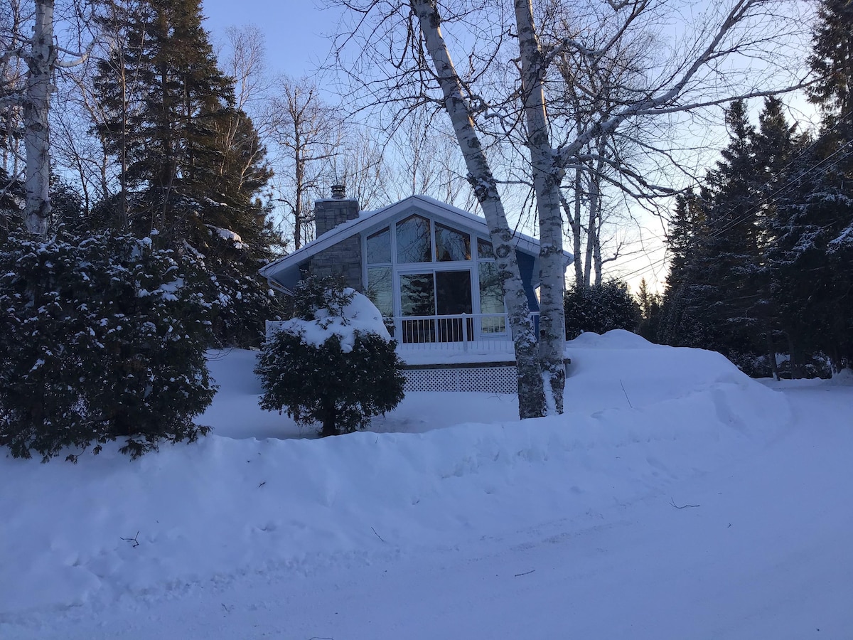 Magnifique chalet de style campagnard avec une ambiance chaleureuse au près du foyer intérieur . Situé dans un lieu Calme et familiale . Profitez d`un grand terrain boisé et bordé d’un joli petit lac (sans moteur) d`une belle promenade dans les sentiers derrière le chalet , en raquette l`hiver. Également idéal pour les motoneigistes , sentiers fédérés accessible via un petit chemin privé sur notre terrain .(Je peux vous fournir 4 paires de raquettes en babiche sur demande.)