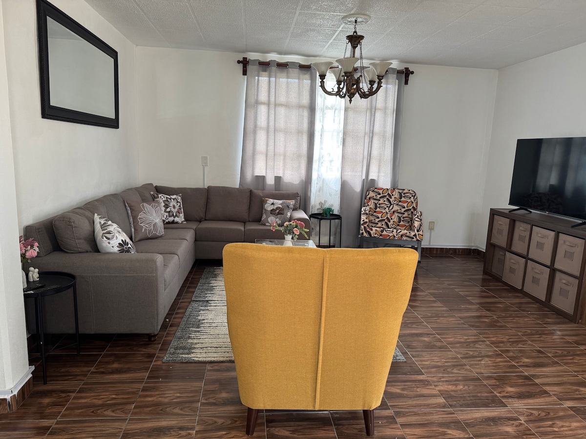 Acogedora casa privada con dos recámaras, baño , cocina equipada, Wi-Fi, TV y estacionamiento al frente. Disfruta del amplio patio trasero, pensada para relajarte, compartir en familia o dejar que tu mascota corra libre. Perfecta para viajes de trabajo, escapadas tranquilas o estancias largas. Menos de 5 min de la zona industrial en un barrio SEGURO. Comodidad, privacidad y buena vibra. ¡Haz de este lugar tu hogar temporal! Ideal estancias largas
