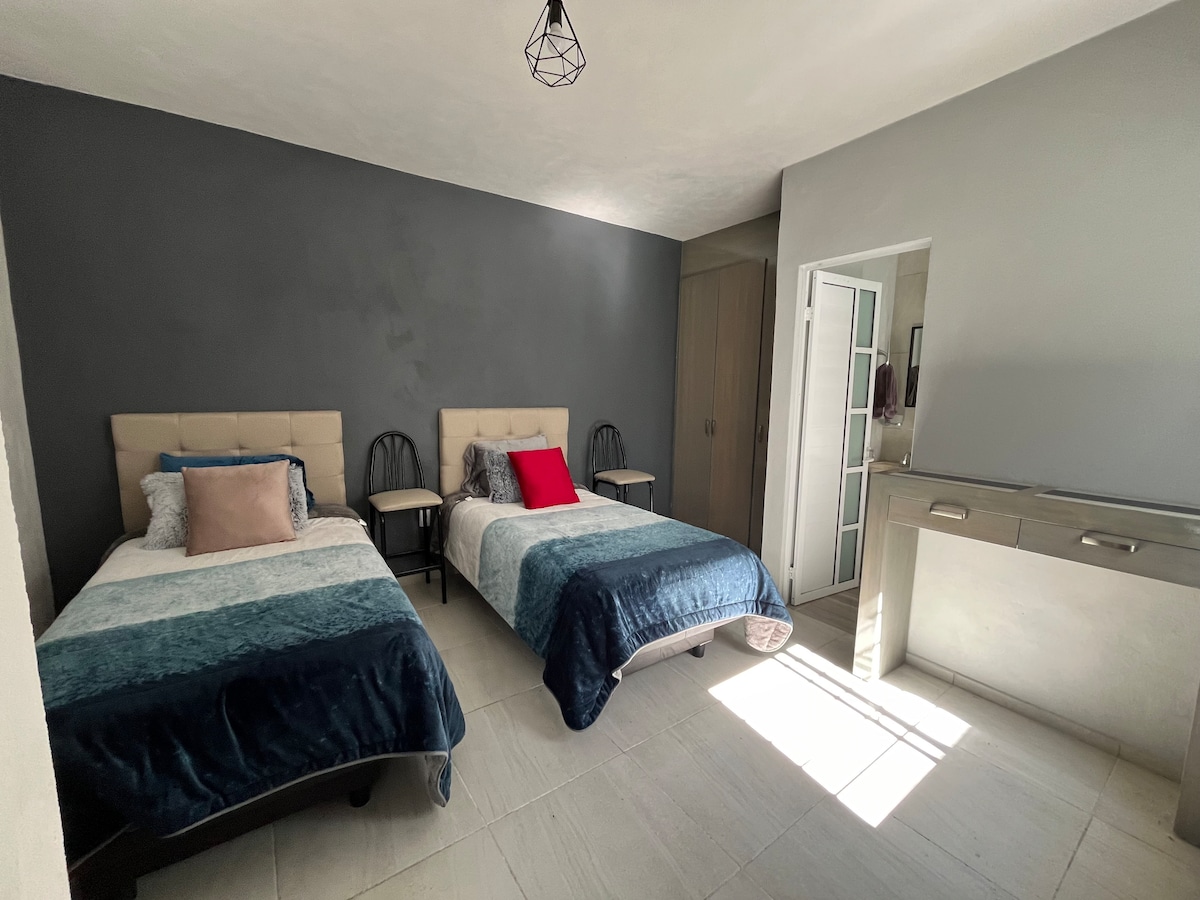 Cómodo, tranquilo y acogedor departamento a 3 cuadras del centro histórico de Tepeapulco y a 5 min. en auto de Cd. Sahagún. Nos encontramos en la vivienda anexa, de esta forma nos aseguramos de darte la mejor atención en tu estancia. Cuenta con cocina, baño completo, sala, una habitación con cama matrimonial y jardín compartido. A solo unos pasos podrás encontrar farmacias, super, tiendas.