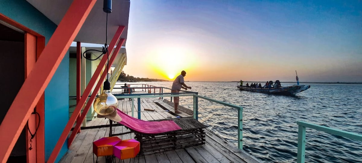 马洛吉岛(Marlodj Sine Saloum)上的漂浮小屋