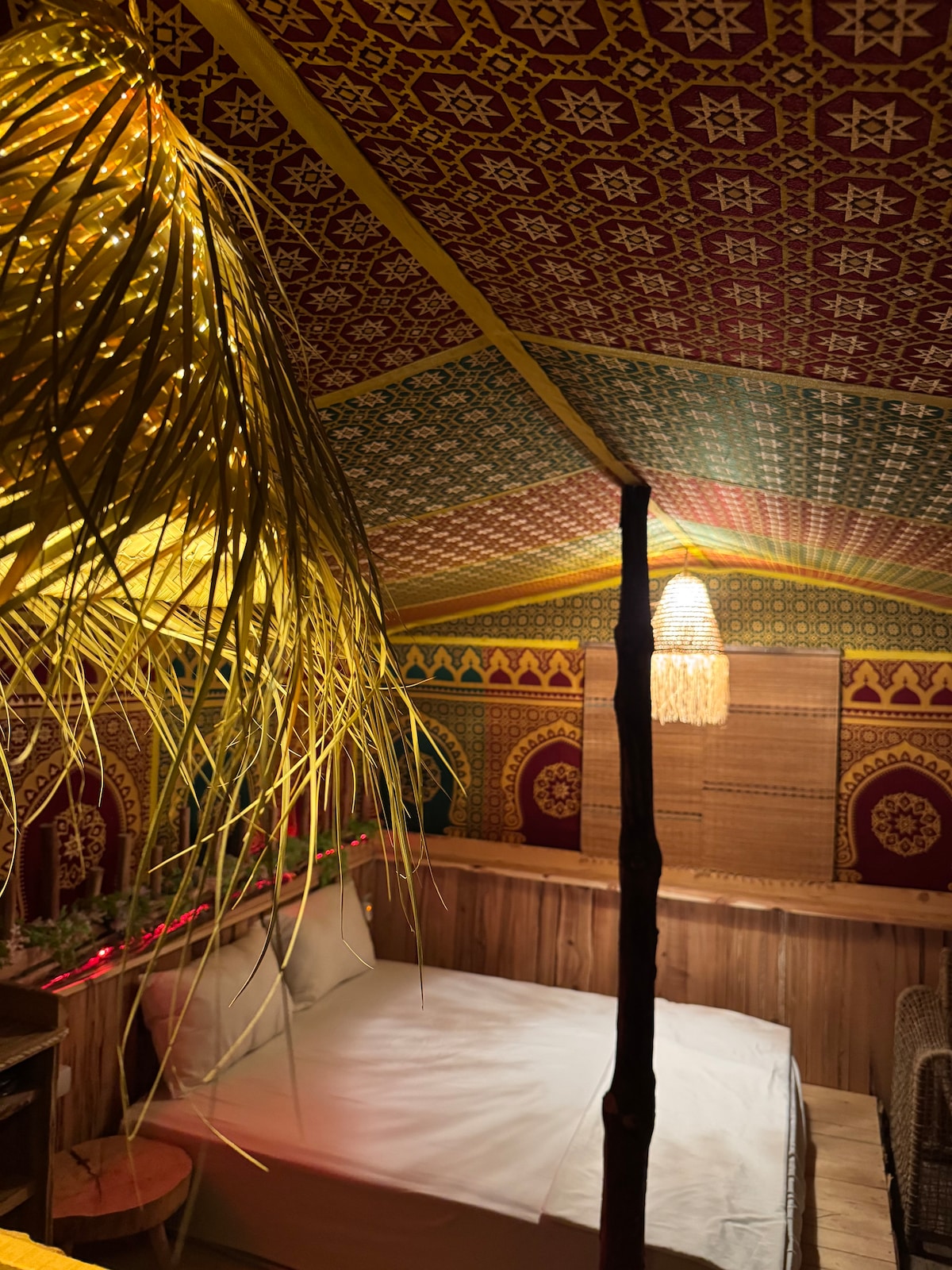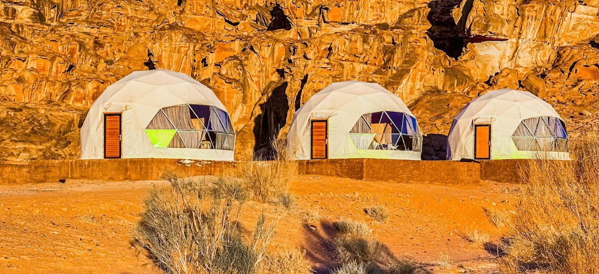 Spend a night in a luxury Bedouin Tent in the heart of Wadi Rum Desert This luxury Tent consists of 3 single sized bed in a private room with bathroom and a panoramic window that lead to the private terrace with a amazing view on the desert. You will be provided with towels, shampoo and free water. It includes free traditional Bedouin dinner and breakfast in the commom room. The transfer from the village is 10JD/person if you don't book a tour with us.