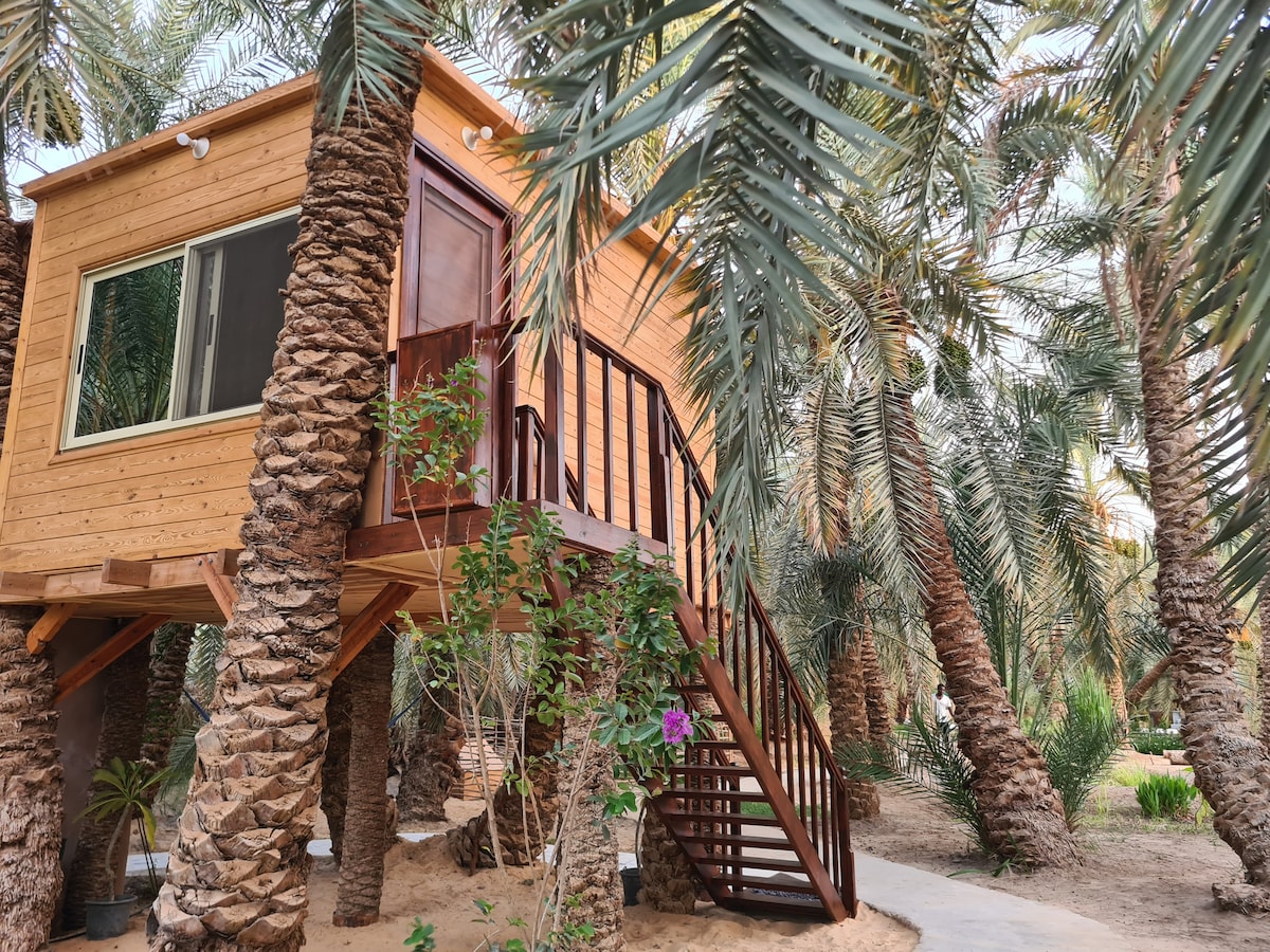 Spellbound in Siwa Oasis, Egypt: Reconnect with nature while having all the comforts you need. Toby is willing to share his treasured treehouse with you when he is not there. All wooden work is bespoke, locally made and finished with eco-friendly, non-VOC varnish. Tranquil private double room with en-suite bathroom and stunning views, hidden in a one-acre palm grove farm with a spring-water swimming pool, relaxing hammocks, pick-your-own food, outdoor kitchennette, and close to many attractions.