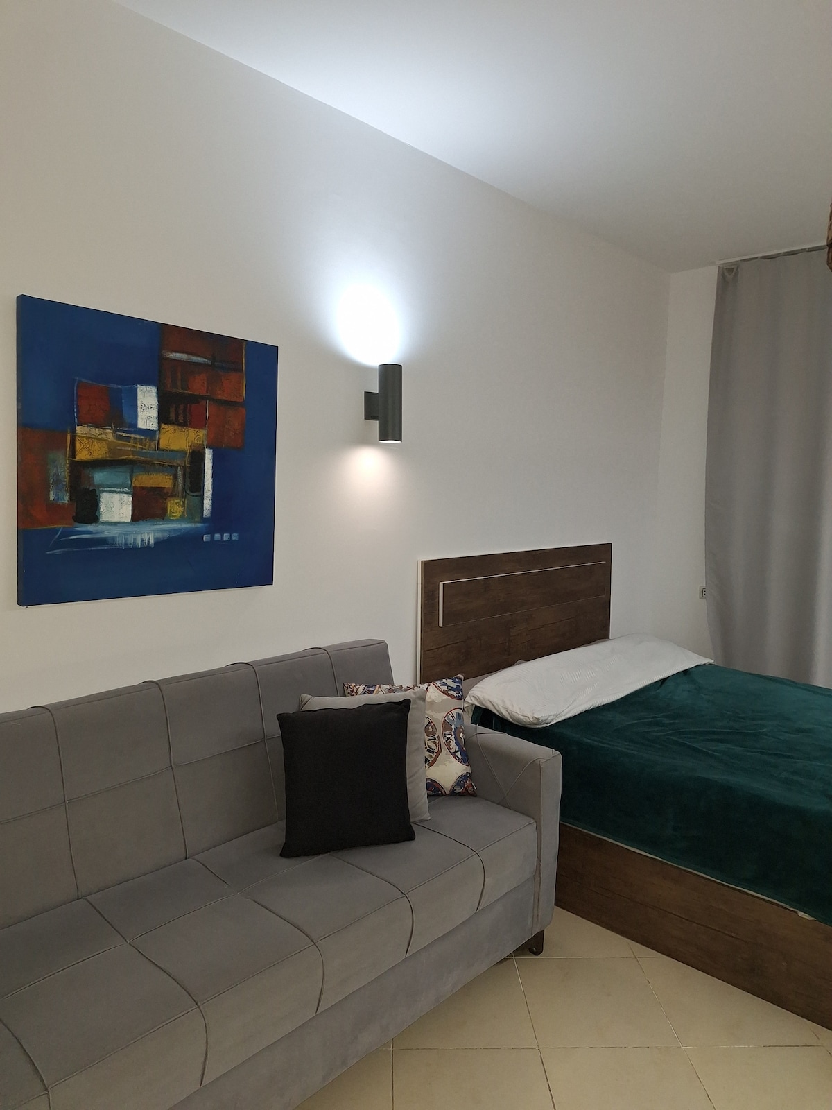 The place is a cozy modern studio overlooking one of the best wide sea view in Hurghada. The place is located in the heart of the city overlooking the corniche with direct access to the best the magnificent boulevard over the red sea. The place have direct access to three pools in the complex and a direct bridge to the beach.The studio is suitable for couples, friends and small families that seek magnificent comfortable stay with a great sea view and a perfectly located studio in the whole city.