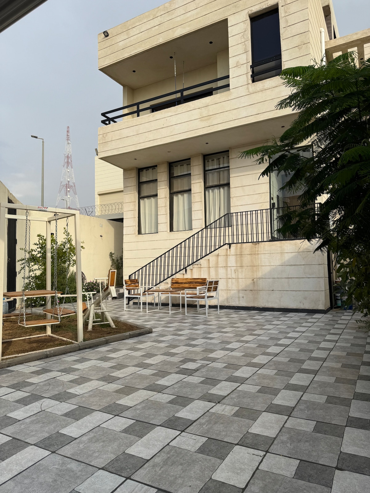 استمتع مع كامل العائلة في هذا الدار المكونه من غرفتين (غرفه نوم اساسية بها سرير لشخصين) و(غرفه استديو بالدور العلوي بمساحه كبيرة بها سرير نوم لشخصين واريكة بالامكان تحويلها لسرير وجلسه مطله على المزرعه وطاولة طعام) و(مطبخ مجهز بالكامل)و(حوش خاص به جلسة خارجيه ومعدات الشوي ) وخارجيا بها حديقه متوفر بها العاب اطفال والموقع به كاميرات حفاظا لسلامتكم . يتوفر : مياه صحية ضيافة. قهوه مقطره v60 ضيافة. خدمة انترنت بالموقع 5G. خيارات مشاهده iptv falcon-stc tv ادوات الاستحمام. العاب تفاعلية.