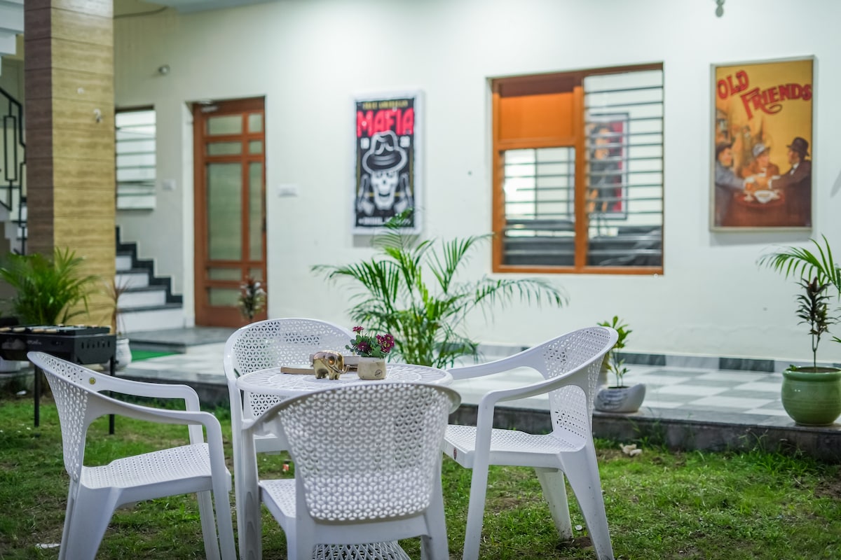 Welcome to your cozy home away from home 🌿✨ 🚗 Close to the Airport, Amity University, Mohali City Center & IT City. 🌿 Private Courtyard – Enjoy your morning coffee or unwind under fairy lights. 🛏️ Comfy Bedrooms – Fresh bedding and all essentials for a restful stay. 📶 Work-Friendly – High-speed WiFi and peaceful surroundings. 📸 IG Corners – Chic indoor + outdoor spaces 🍟 Close to Mohali City Center & food outlets. 🔥 BBQ & Bonfire are most enjoyable. 🐇 Pets are allowed.
