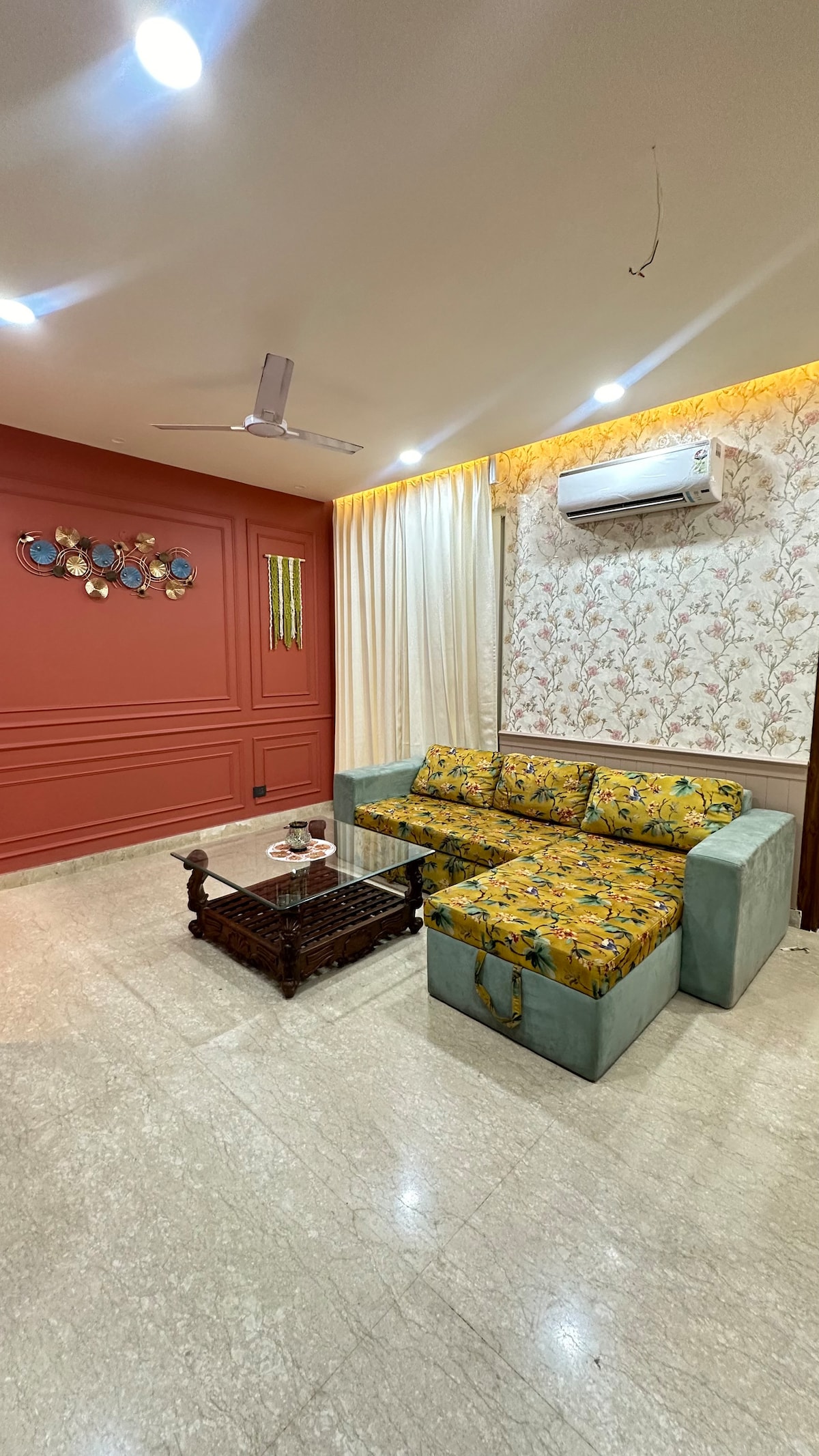 Step into a vibrant blend of tradition and modernity at our thoughtfully designed apartment, where teal-toned interiors meet a curated collection of Indian art. Adorned with stunning Madhubani paintings, abstract artworks, and prints sourced from across Jaipur, this space is a visual journey through heritage and creativity. Whether you are a solo traveler, a couple, or an art loving explorer, this apartment offers a cozy yet stylish setting with all the comforts of a modern stay.