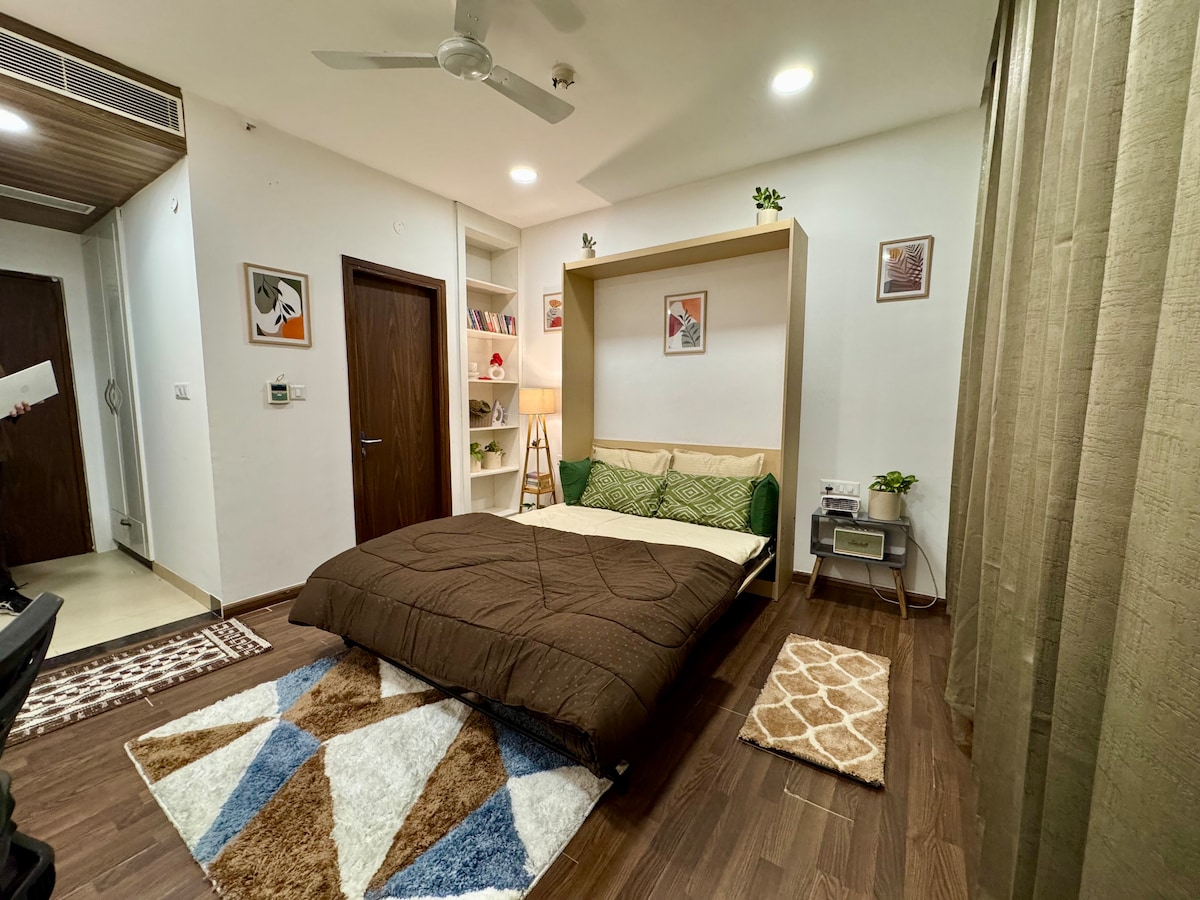Welcome to your home away from home ! Whether you're visiting for work or leisure, this bright and stylish space is perfect for couples or solo travellers, families. 🛌 What You'll Get: 1 bedroom with comfortable bed & living area • 1 bathroom with hot water & basic toiletries • Fully equipped kitchen for home-cooked meals •High-speed Wifi 📶, Smart TV🖥,Refrigerator Other Highlights: •Parking 🚗 /24x7 Security 🎥/ Self- check-in 🛅 / Elevator 🛗/ Pet-🐶 friendly •24x7 power💡Backup
