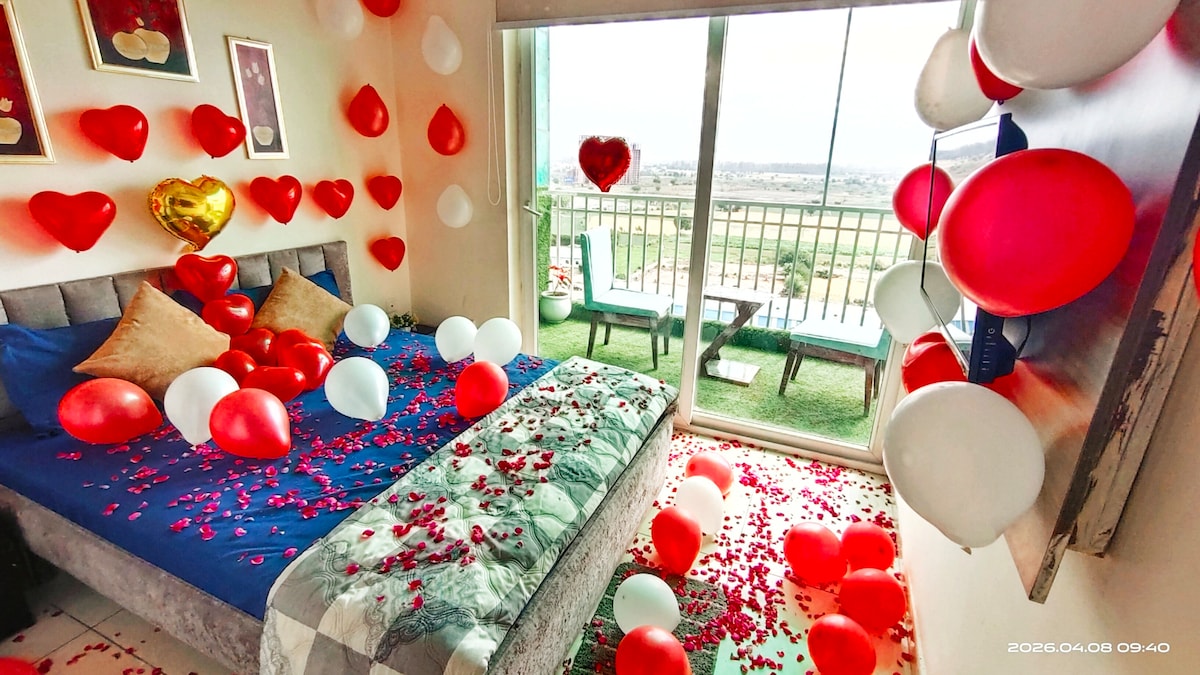 This stylish place to stay near airport with wifi is perfect for families / group stays. Stylish Rooms : *Warm light side lamps *TV *Soft bedside Rugs *Attached wardrobe and bathroom *Bed sheet and blanket *Extra pillows *Towels and toiletries *Air conditioning *Electric geyser in bathroom Fully Equipped Kitchen : *Basic cooking essentials *Required Crockery *Microwave *Electric kettle *Gas stove *Chimney *Filtered water *Refrigerator ❌NO LOUD MUSIC ❌