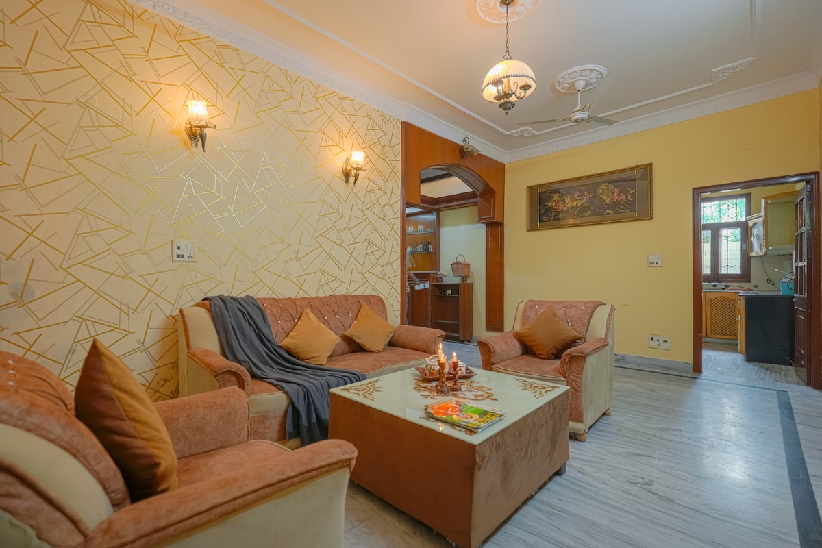 Reserved for families, corporates and ideal for outstation patients (fortis, max etc ). The place is on the airport road , in close proximity to amity international school. Laden with appealing and enriching interiors. Some of the following facilities at this property are as follows :- >HD Smart TVs >Gas stove (pricing extra) >well equipped kitchen with facilities like microwave, fridge, chimney, crockery, kettle, mixer etc >washing machine > twin colour lights in rooms
