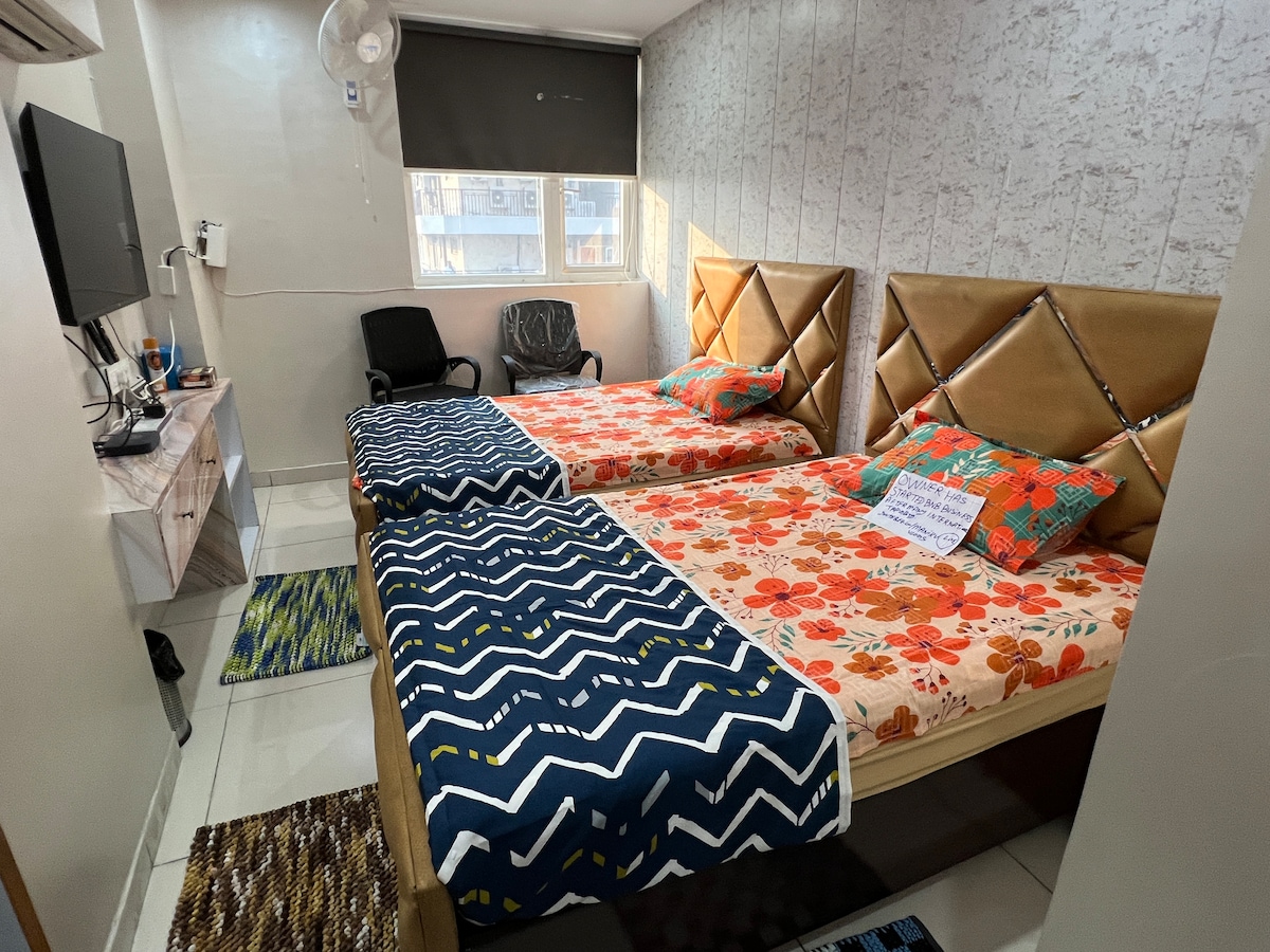 Reserved for families, corporates and ideal for outstation patients (fortis, max etc ). The place is on the airport road , in close proximity to amity international school. Laden with appealing and enriching interiors. Some of the following facilities at this property are as follows :- >HD Smart TVs >Gas stove (pricing extra) >well equipped kitchen with facilities like microwave, fridge, chimney, crockery, kettle, mixer etc >washing machine > twin colour lights in rooms