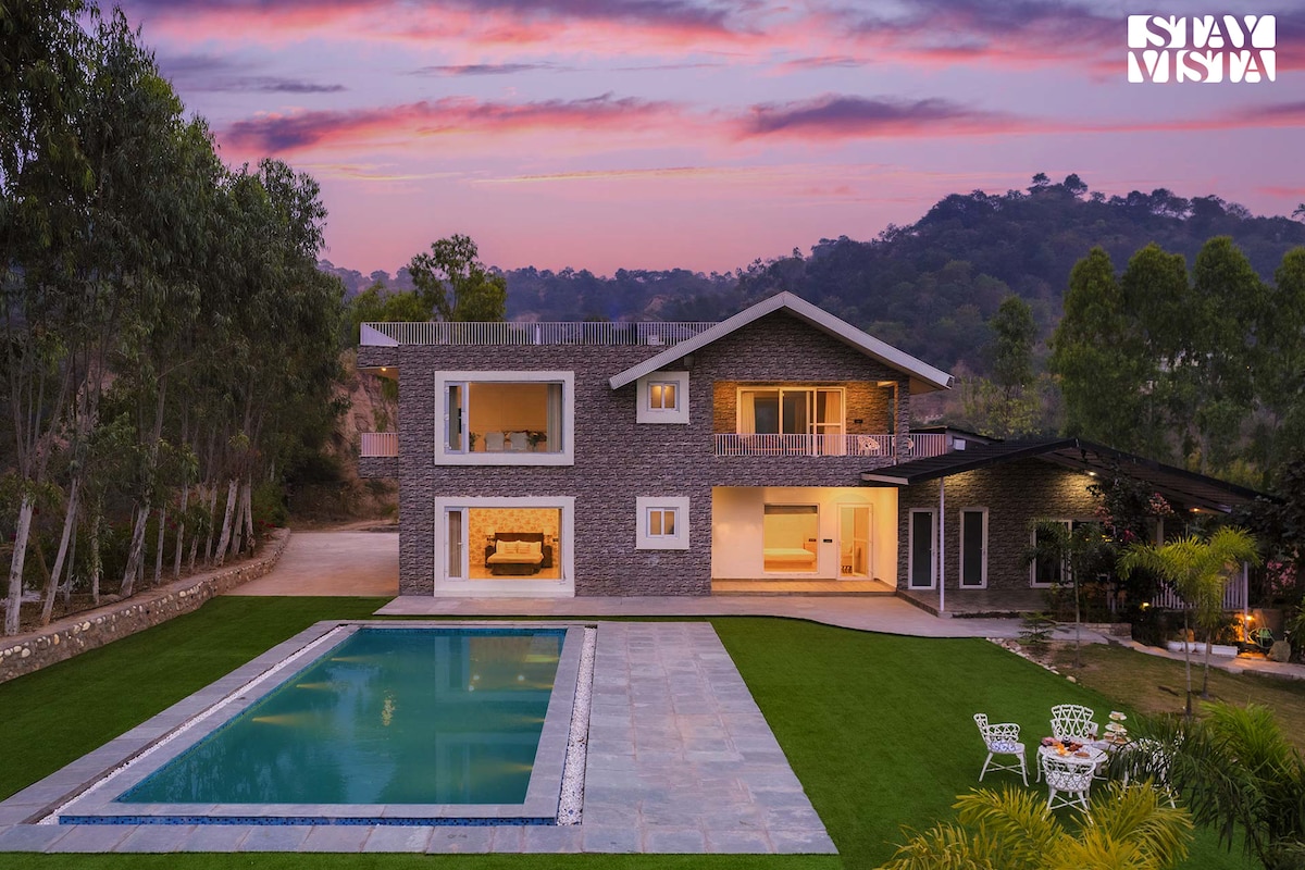 Casa Fiesta is Chandigarh’s first Airbnb with its own luxury Padel Court, nestled on the Morni foothills just 10 minutes from the Panchkula–Shimla expressway and city centre. Set amid lush greenery, the farmstay offers a serene country-feel while keeping city conveniences close by. With a spacious lawn, rooftop lounge, cozy indoor living area, and a seasonal organic kitchen garden, it’s an ideal spot for romantic escapes, family getaways, and rejuvenating staycations.