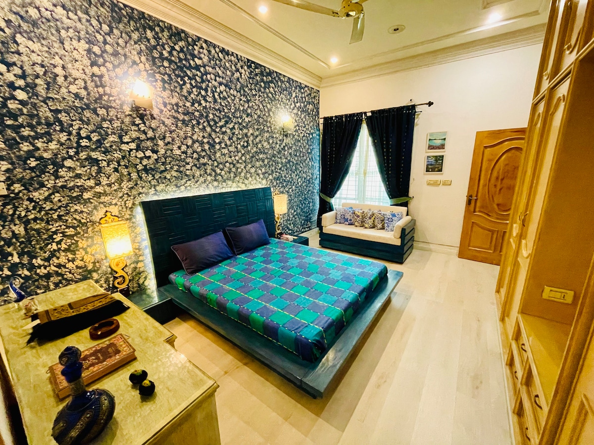 Forget your worries in this spacious and serene space. Family friendly , you will get a furnished room in the villa. Basically the entire villa to yourself and your family. You will have a private garden, parking space inside villa. Private balcony and roof top. Complete privacy.
