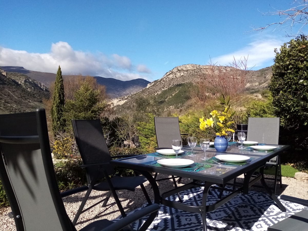 Ce studio-terrasse indépendant neuf de 25 m² offre une vue magnifique sur le village de Sahune et la vallée de l'Eygues. Ce studio en rez de jardin reste frais même en été ! La rivière toute proche offre de jolis coins baignade. Deux restaurants, un bar, une boulangerie et une supérette sont accessibles à pied. Marché de producteurs locaux tous les mercredi soir. Le secteur est réputé pour la randonnée, le vélo et l'escalade .