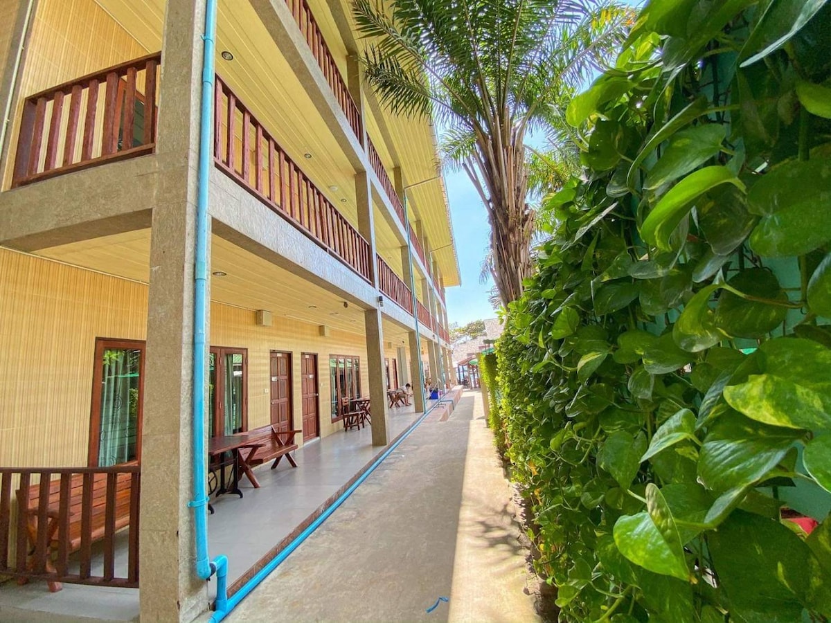 ที่พักราคาประหยัด ใกล้ชายหาด ใกล้ร้านค้า สะอาด เงียบสงบ เดิน 1 นาทีถึงชายหาด มีบริการรถมอเตอร์ไซค์เช่า