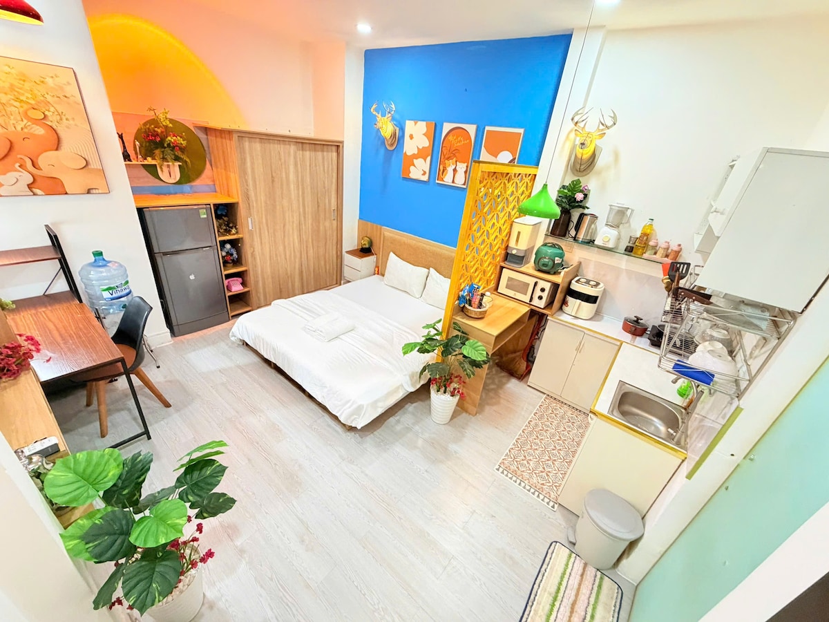 Established in 2023, We offer High Quality Short and Long Let Serviced Apartments located right on a busy street with famous cafes, restaurants, Circle K and convenient stores near by and just a few minutes walk to Bui Vien walking street, Tao Dan Park. Cost-effective compared to hotels, we provide 1 BR serviced apartments with privacy, modern style, kitchen, balcony, soundproof door & windows, desk space to work, rooftop garden, elevator, regular cleaning and the comforts of a “Home-from-Home”.