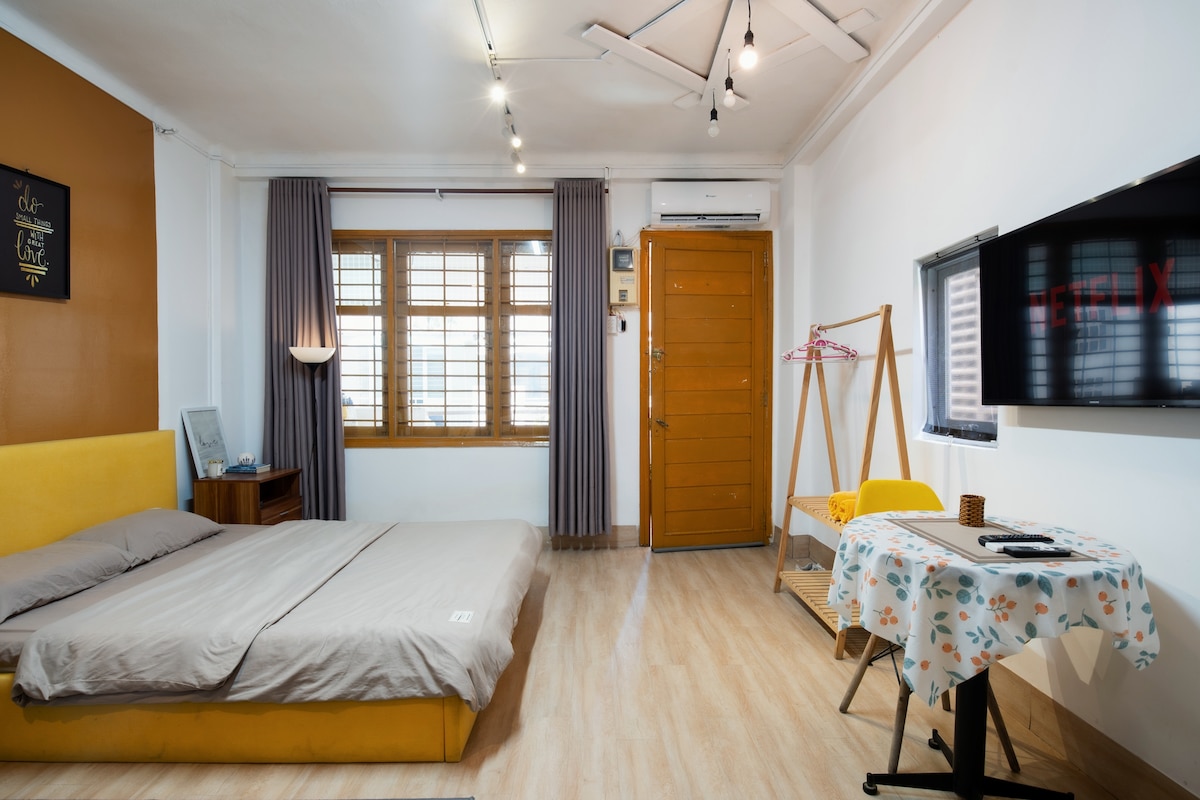 Studio apartment with unique design located in a lovely alley in Saigon Center. The studio is located on the 2nd floor of a townhouse, of which the 1st floor is the lovely BeanThere cafe. It only takes a few minutes to reach attractions and nightlife activities. One breakfast (01 food and 01 drink) / guest / night in Beanthere cafe. We offer free housekeeping for bookings longer than 4 nights. If needed, you can notify 1 day in advance.