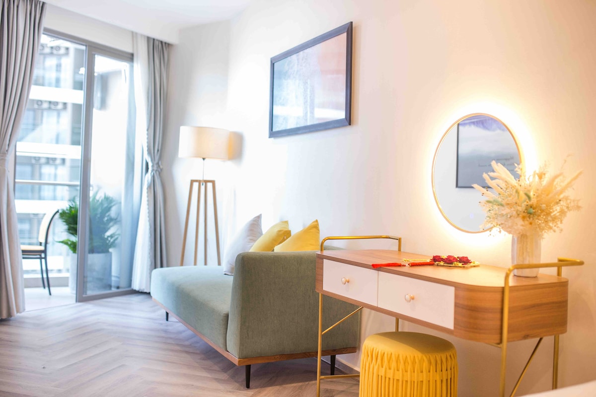 A modern, well-equipped studio apartment just minutes walking from Back Beach (Bai Sau). Walking distance to Lotte Mart, pharmacy, local market and convenience store. The Apartment is a perfect fit for a family of 4 with one bedroom with extra bed, kitchen, huge living room, comfortable shower, refrigerator, dinning table, working desk, closet and huge Wifi TV with Youtube.