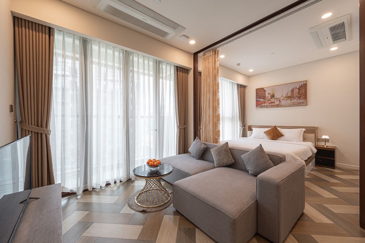 A beautifully designed studio apartment with everything you need, centrally located but hidden away just enough for a peaceful night of sleep away from the heavy city noise. Great for travelers who want to explore Saigon and are looking for quality comfort and a more local experience. - Beautiful swimming pool - Free fast wifi, Cable TV - Free amenities for your living: washer, dryer, AC, fridge, hot water - Kitchen with enough tools for your cooking. Note: Not provide/support VAT invoices