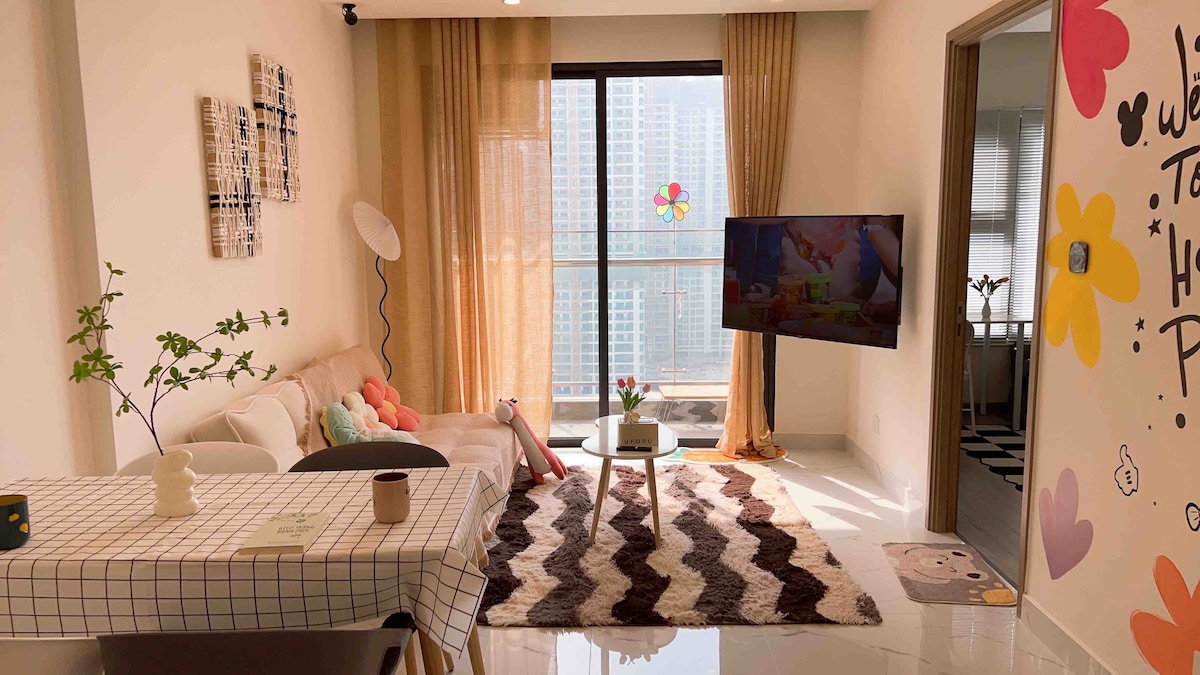 - Located at Master Centre Point, Vinhomes Grand Park, near Vincom (big shopping mall), near 36ha theme park. - The apartment is clean and beautiful, with cool and comfortable bedding sets. - Strong WiFi for both work and entertainment. - Full and Modern amenities: big refrigerator, induction stove, microwave, washing machine, smart 65-inch TV, kettle, rice-cooker, hair dryer, iron, umbrella, Lavie mineral water, seasonings... - Fitness/gym center and swimming pool available for free use.