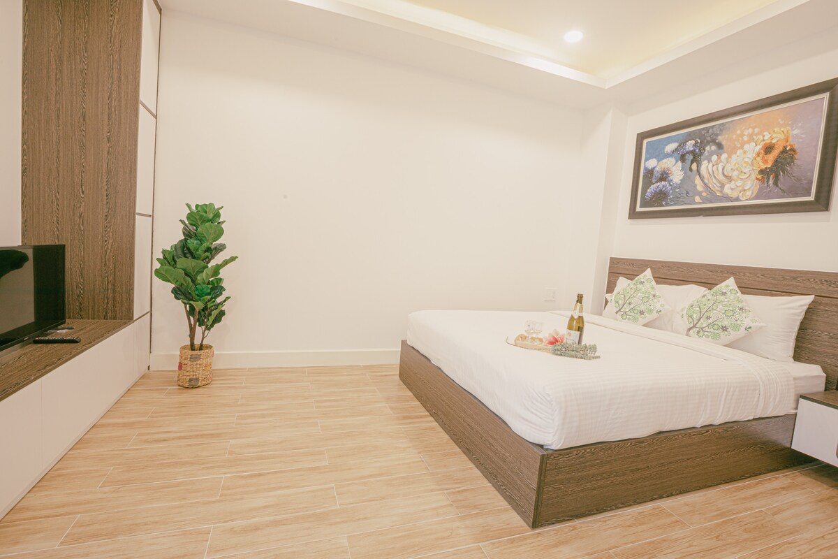 A beautifully designed studio apartment with everything you need, centrally located but hidden away just enough for a peaceful night of sleep away from the heavy city noise. Great for travelers who want to explore Saigon and looking for quality comfort and a more local experience. - Beautiful swimming pool - Free fast wifi, Cable TV - Free amenities for your living: washer, dryer, AC, fridge, hot water - Kitchen with enough tools for your cooking. Note: Not provide/support VAT invoices