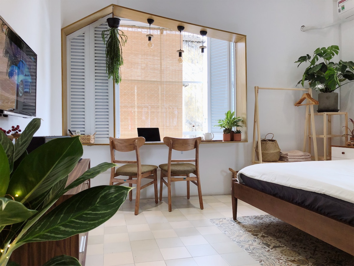 Established in 2023, We offer High Quality Short and Long Let Serviced Apartments located right on a busy street with famous cafes, restaurants, Circle K and convenient stores near by and just a few minutes walk to Bui Vien walking street, Tao Dan Park. Cost-effective compared to hotels, we provide 1 BR serviced apartments with privacy, modern style, kitchen, balcony, soundproof door & windows, desk space to work, rooftop garden, elevator, regular cleaning and the comforts of a “Home-from-Home”.
