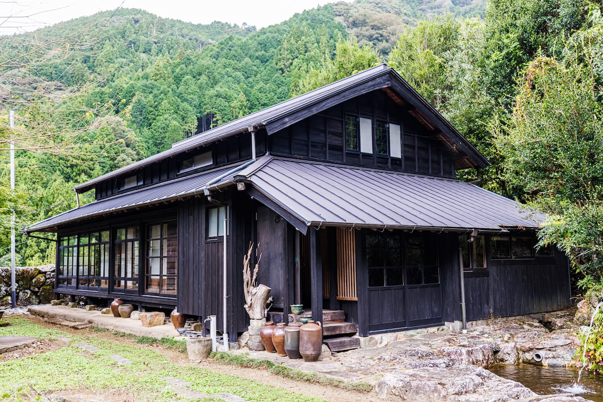 森林环绕的独一无二的古民宅。外面还有一只可爱的黑猫